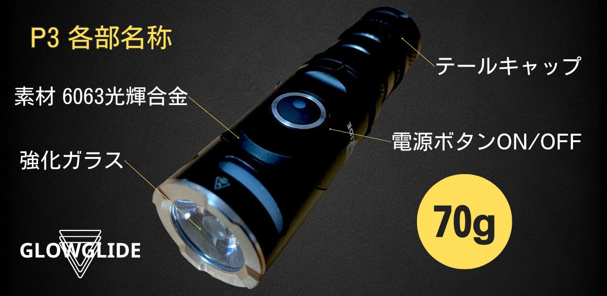 この度はGLOWGLIDE P3の小型懐中電灯にご興味頂きありがとうございます。