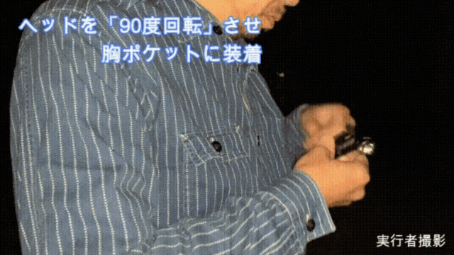 2.「ヘッドを回転するようにしたい」ヘッドを回転させることにより胸ポケットに付けら「両手を使わず」に歩けるようになり便利!