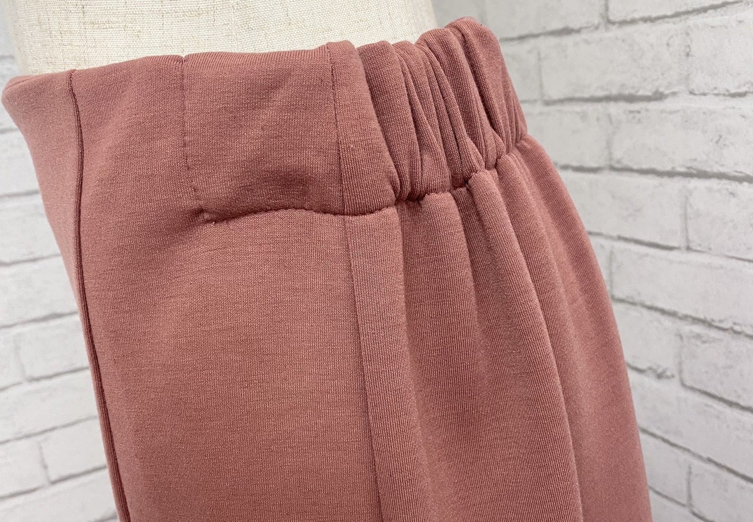 適度に厚みのある生地でありながらオチ感のある柔らかさなのでボディーラインも気にならず、長時間の座り作業もシワが気になりにくく静電気などのモタつきからも解放