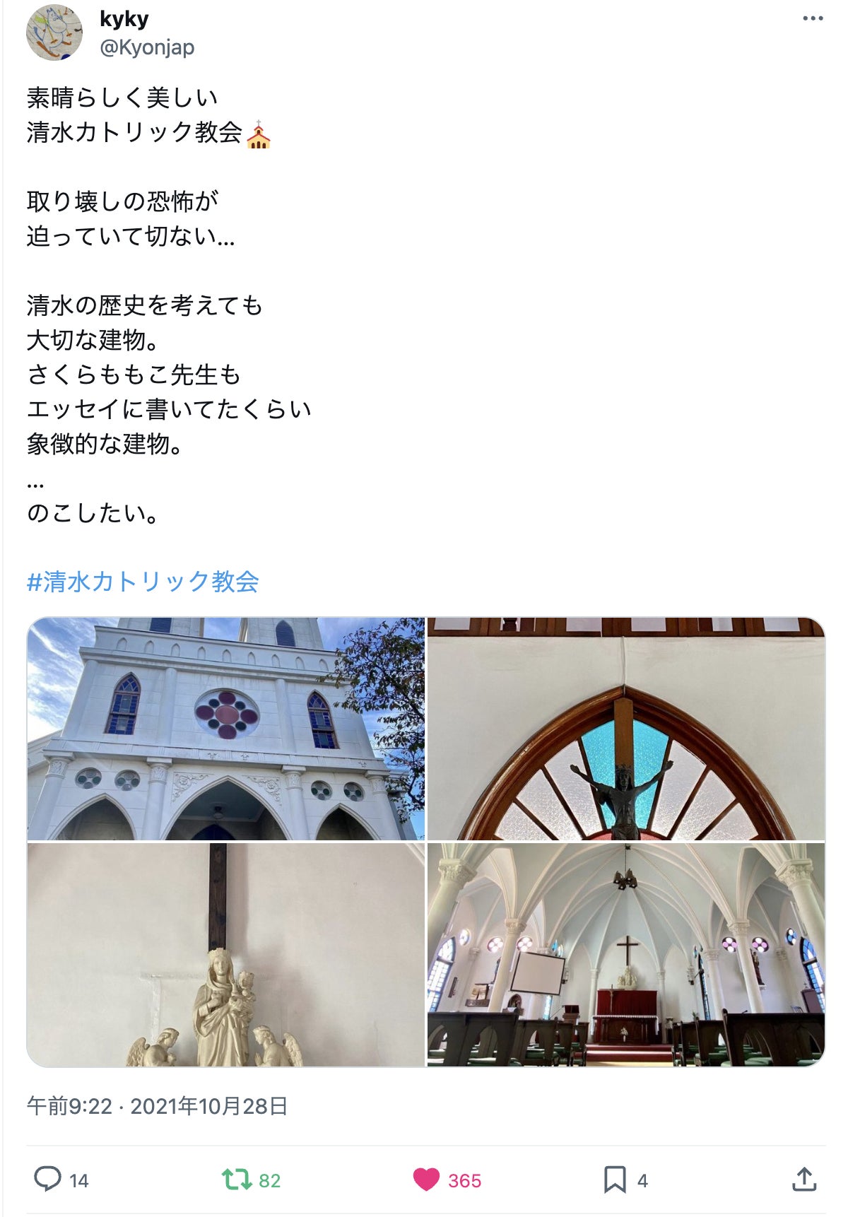 またSNS等では、旧カトリック清水教会の建物取り壊しを惜しむ声もたくさんいただきました。(一部抜粋)