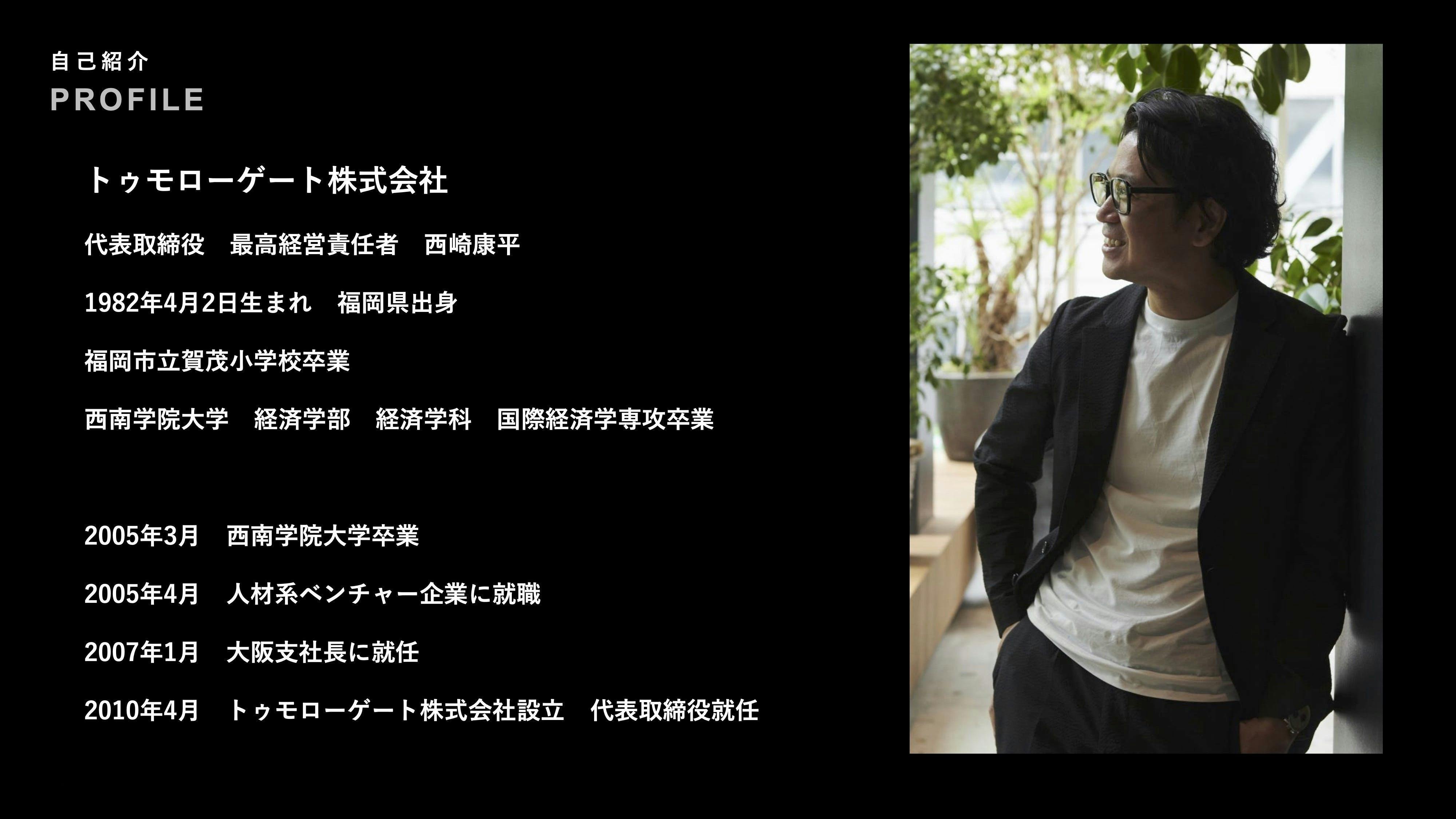 トゥモローゲート株式会社 代表取締役 西崎康平