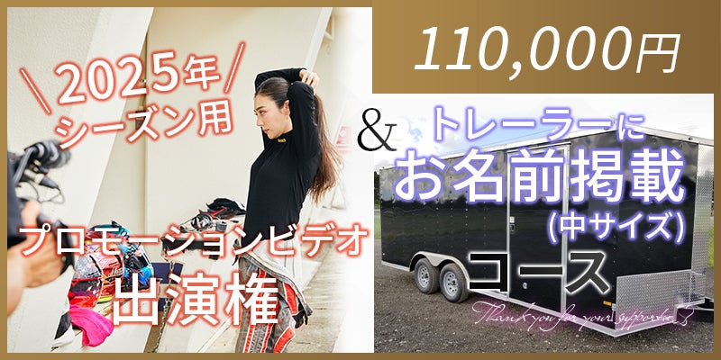 トレーラーに掲載するお名前のサイズは横300mmを予定しております。支援者様の総数で変更になる場合がありますので予めご了承ください。(掲載期間はどのコースも2024年シーズン〜2026年シーズンの3年間を予定しております)