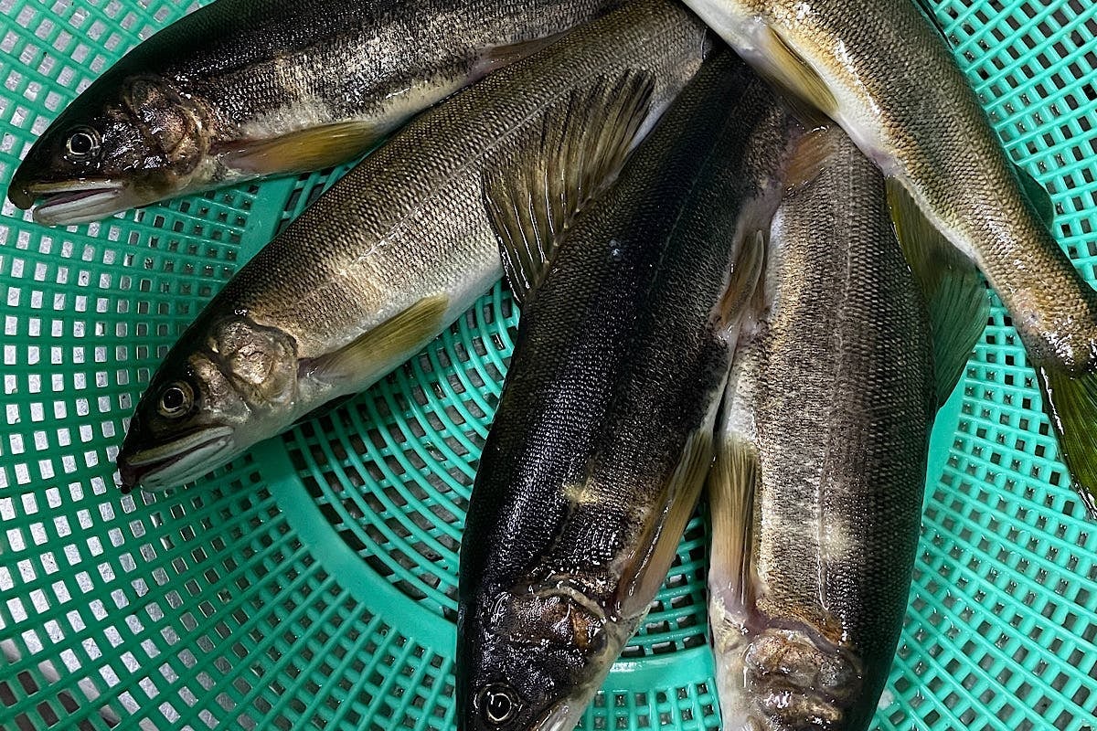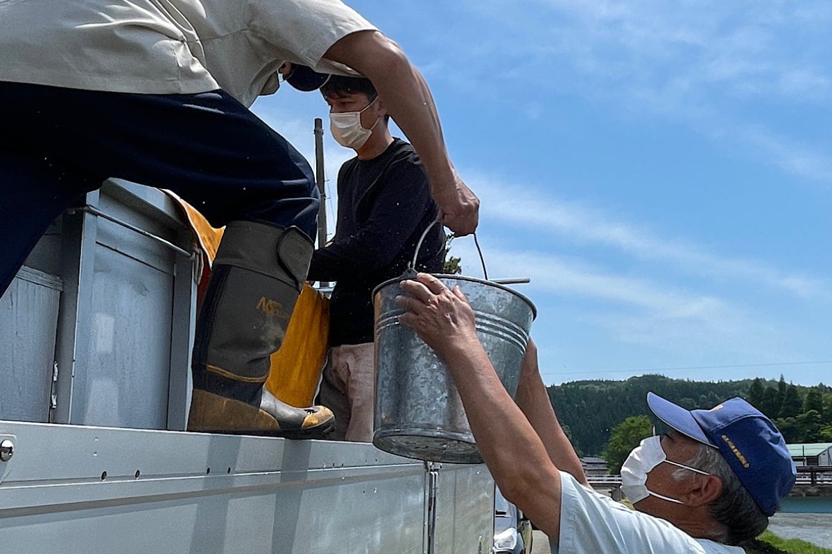 秋田県では天然鮎の減少に伴い、資源確保のためにも養殖した鮎を各河川の漁協組合で遊漁用に放流しています。秋田県内には鮎の養殖事業者が3つあり、鮎乃家はその1つです。鮎乃家では毎年1トン以上の鮎を地元の河川から100キロ離れた河川まで、計5つの河川に放流しています。
