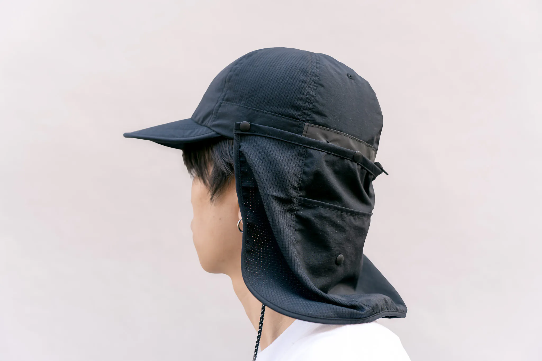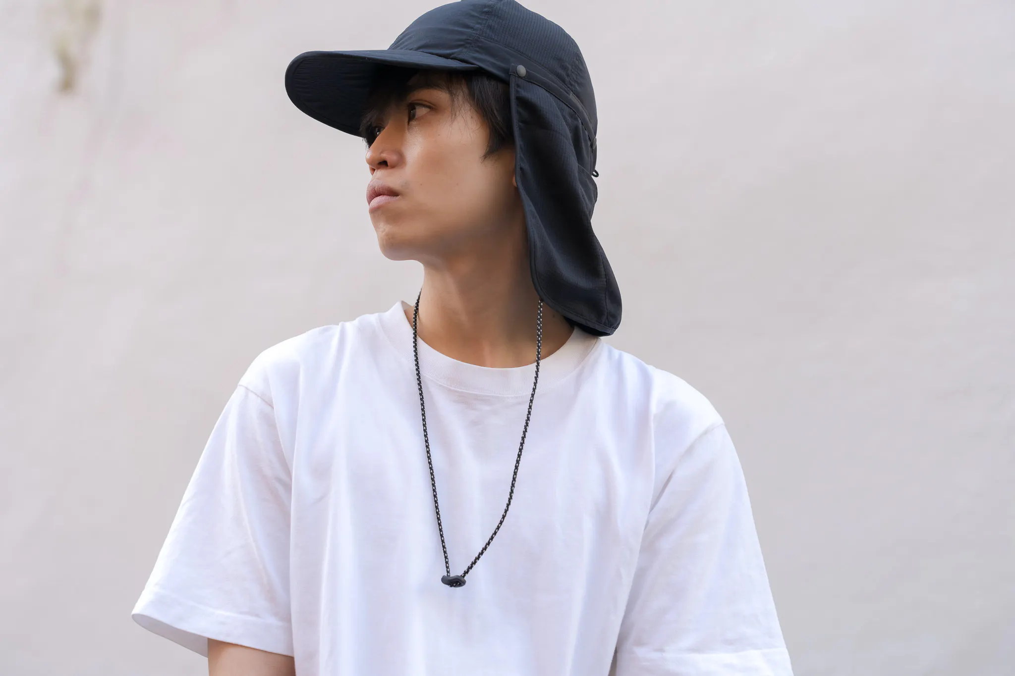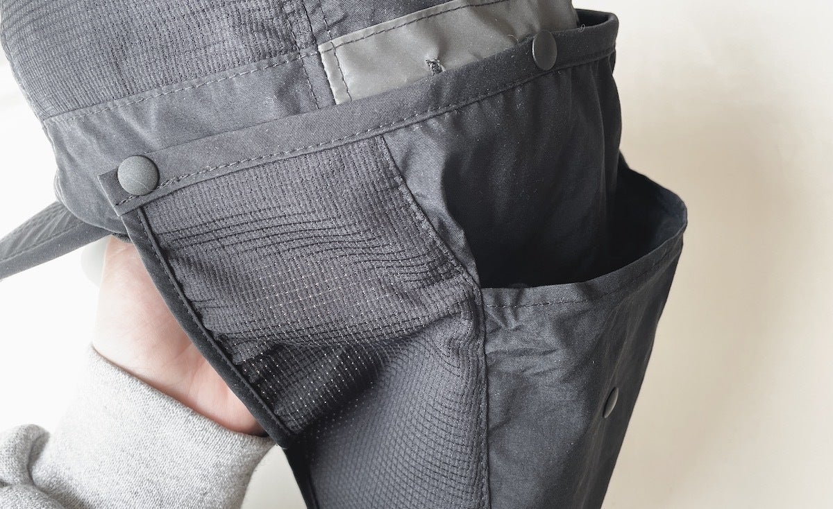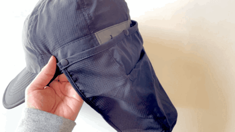 スナップボタンで着脱ができる仕様になっており、首の後ろまで日差しをしっかりカバーしたいシーンや虫除けなど重宝すること間違いなし。