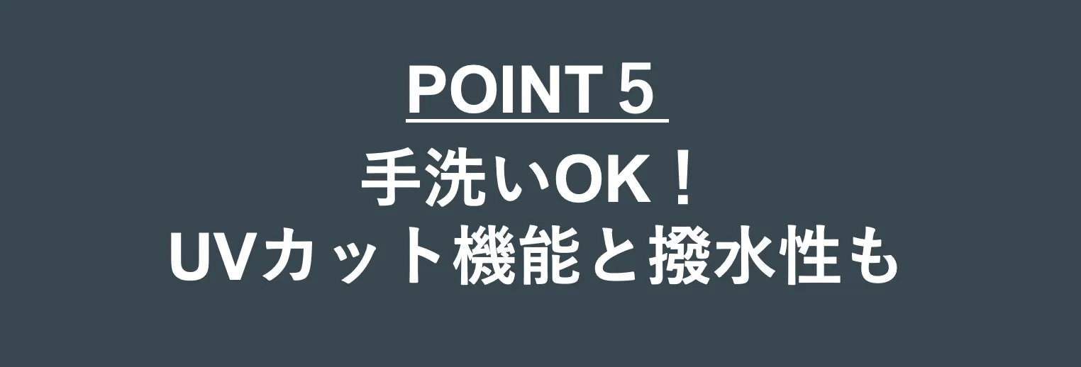 さらに、UVカット機能(※)と撥水性も搭載し、雨や強い日差しの日にも心置きなく使っていただけます。※紫外線遮蔽率99.7%(日本繊維検査協会にて検査済)