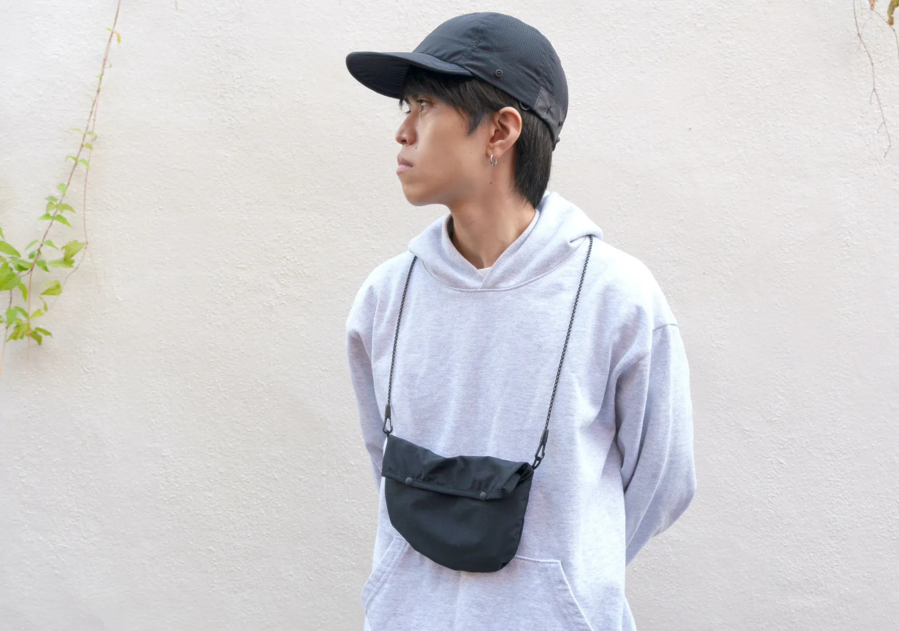 今回、こだわったポイントはなんと言ってもキャップを収納できるサコッシュを付属した点。キャップをブリムの形に沿って半円形にコンパクトに収納ができます。