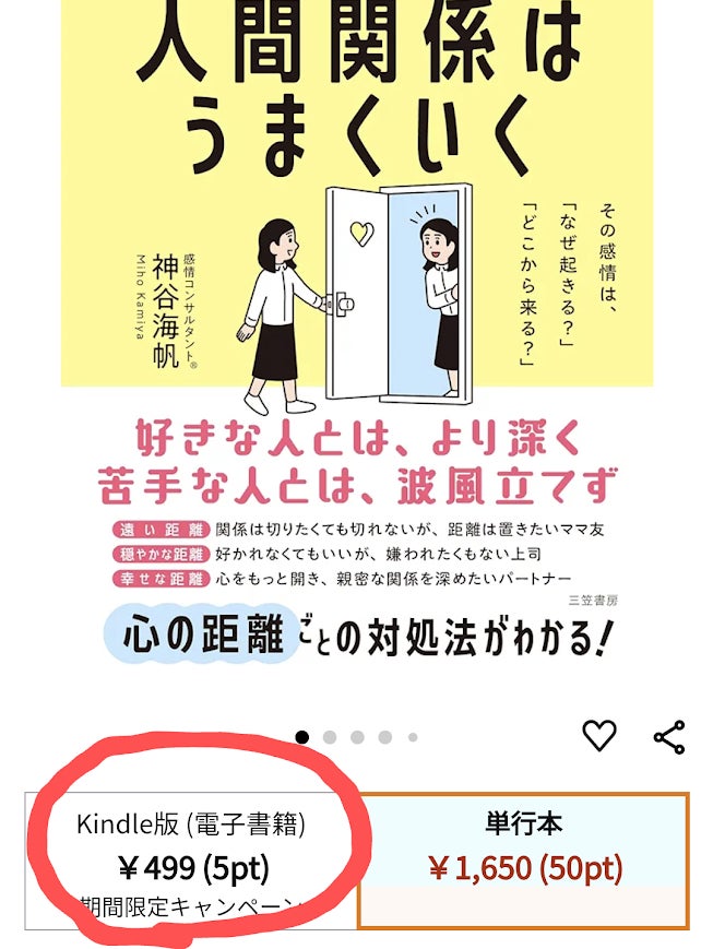 2024/08/25 12:14拙著「100%仕事で折れない感情マネジメント」プレジデントオンラインに掲載八重洲ブックセンターグランスタ八重洲店 ビジネスランキング1位/総合ランキング2位ジュンク堂書店大阪本店 ビジネス書ランキング1位三省堂書店大宮店 ランキング1位ジュンク堂書店広島駅前店 ランキング1位紀伊國屋書店新宿本店や札幌本店三省堂書店名古屋本店など大規模展開をしてくださる書店さまもたくさんで各地から写真が届いております。紙の本を読んだら「相手との人間関係はこう考えればいいんだ!と気持ちが楽になりました。電子書籍もダウンロードしてバイブルにしています!」という嬉しい声もいただいております。紙の本は持っているけど電子書籍もあるといいな・・・と思っていたあなた!なんと!?Amazonの「日替わりセール」1日限定で、電子書籍が値引きになるプロモーション企画に『感情のメッセージに気づくと、人間関係はうまくいく』が選ばれました!通常1617円が本日のみ499円です!8月25日限定です。ぜひこの機会にダウンロードください。https://amzn.asia/d/4mkXV8Vまた、値引きの機会にぜひお友達や大切な方にお知らせいただけたら嬉しいです。Amazonレビュー絶賛受付中です!レビューってけっこう大変なんですよね。私がまだ本を出す前の頃レビューは本をしっかり読んでちゃんと、しかもたくさん文章を書かなきゃと思っていましたが著者さんから「1行だけでも嬉しいんだよ!」と言われてそうなの!?って思っていました。更に私は「レビューしました!」ってわざわざあつかましく言うのもどうかと思って著者さんには伝えずにいました。自分が逆に本を出す立場になって本当に思います。1行だけでもいや、ひと言だけでもめちゃめちゃ嬉しい!!!そして、もしレビューいただけたら教えて欲しい!レビューって本名じゃないからどなたが書いてくれたのか分からなくてお礼をお伝えしたくてもできないことがあるのです。だからぜひ、気を使わずレビューをいただけたら教えていただけると嬉しいです!https://amzn.asia/d/4mkXV8V もっと見る