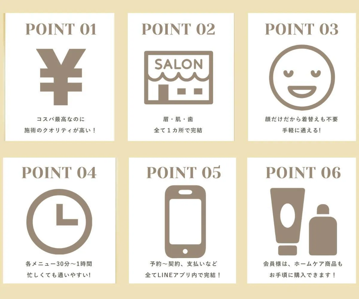 1ヵ所で肌ケア(ハイドラフェイシャル)・ホワイトニング・アイブロー・脱毛がサブスクで通い放題!もちろん好きなメニューだけチョイスも可能!色々なサロンを回ってメンテナンスはもう不要! 1つの場所で、コスパも満足も効率よく!