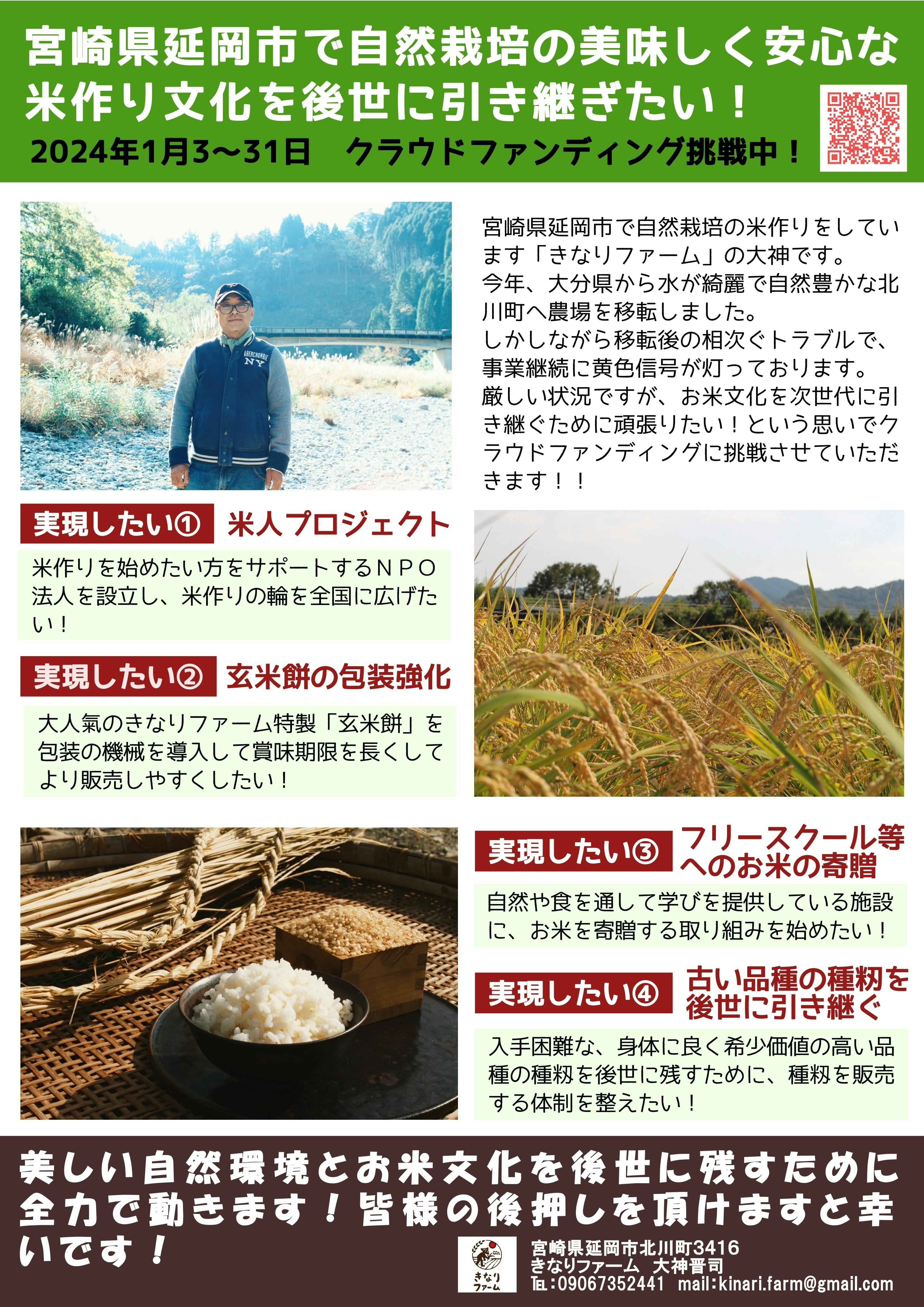 はじめまして、宮崎県延岡市の自然栽培の米農家「きなりファーム」の大神晋司と申します。