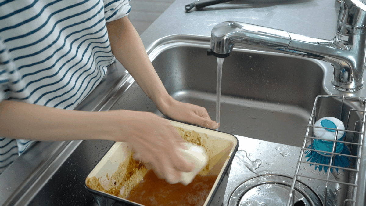 2. 食器洗浄機の洗剤は、研磨剤や漂白剤が入っていないものをご使用ください。汚れが落ちやすいのがホーローの特性でもありますので、台所用洗剤を含ませたスポンジでの手洗いをおすすめします。