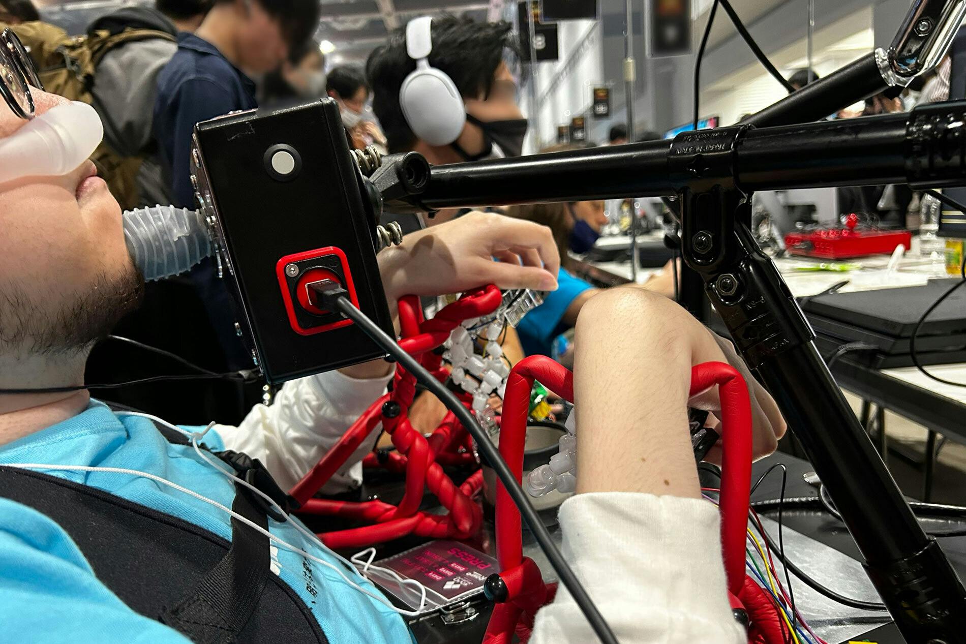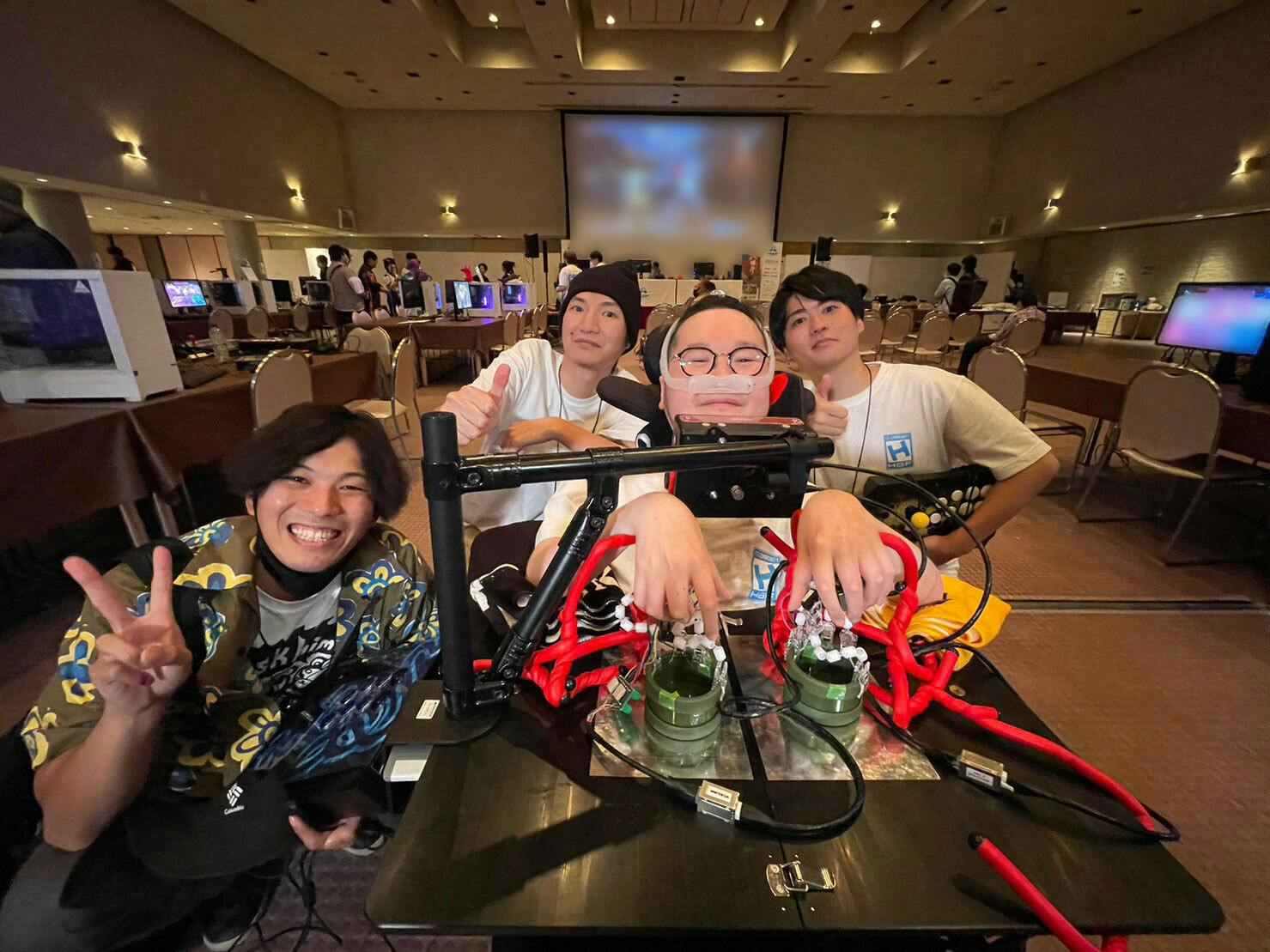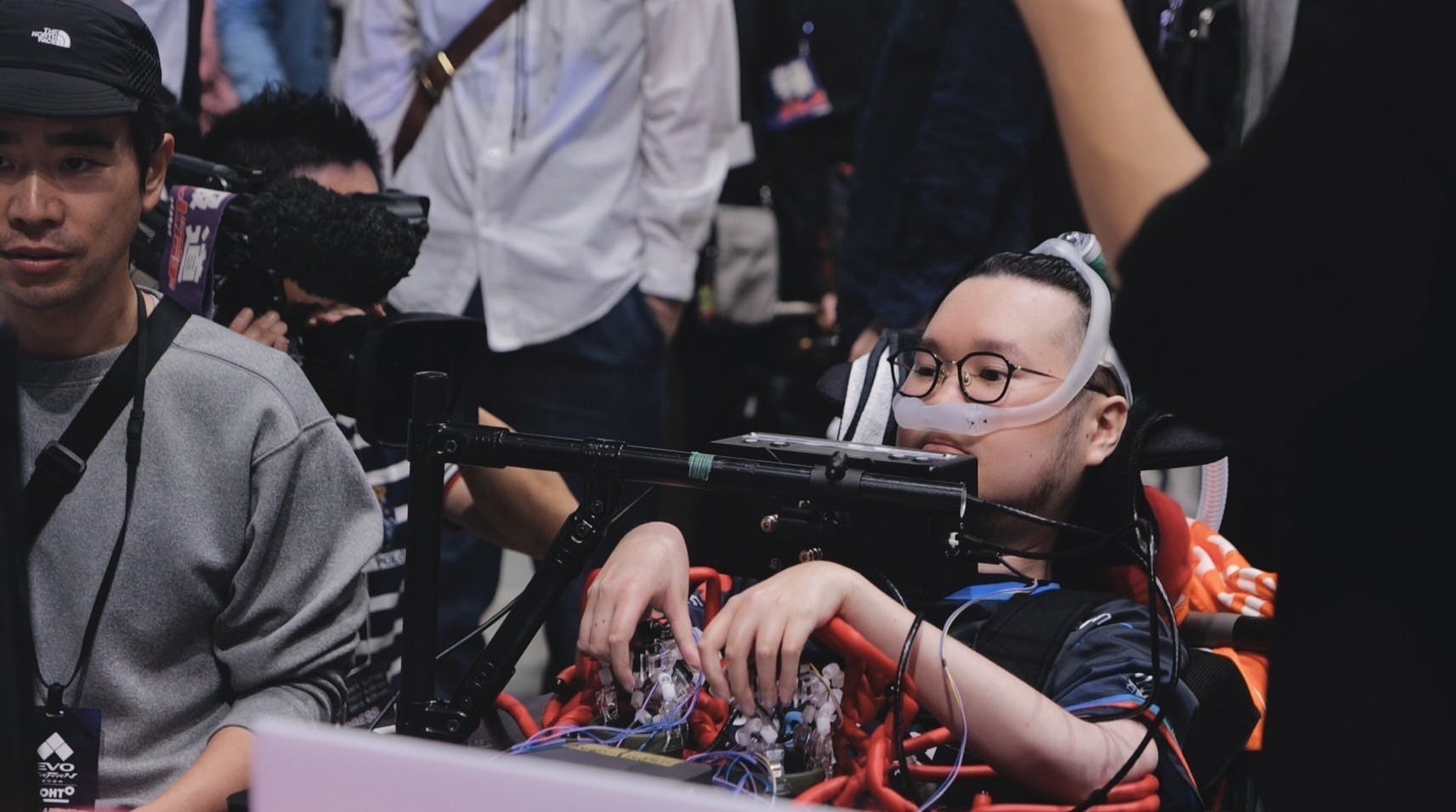 病気の進行でコントローラーが握れなくなり、一度格闘ゲームを諦めるも、自分の本当にやりたいことを諦めきれず、あごで操作する専用コントローラーを仲間に協力してもらいながら制作しました。