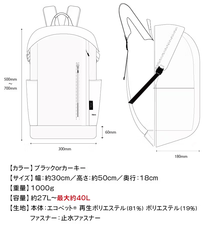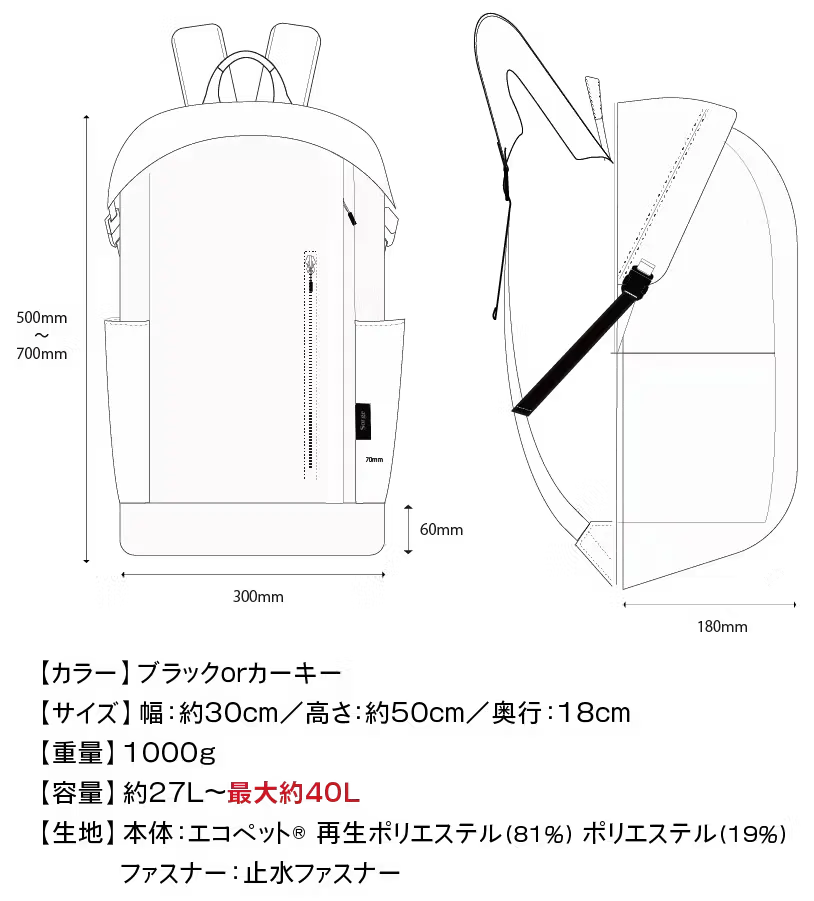 など、さまざまなお客様の声を元に作られた理想のバックパックです。