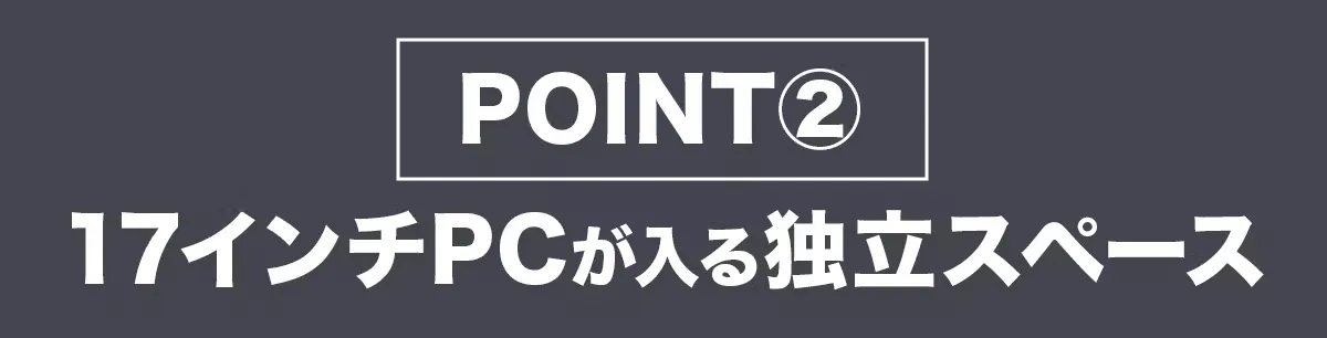 背面にあるPCスペースは、3つに区切られているので、タブレットから17インチまでのPC、ノートやA4サイズの書類などを収納できます。