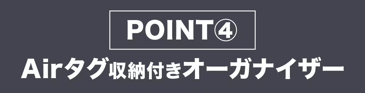 メイン収納の内側に、パスポートや小物を整理できるオーガナイザースペースを設置。オーガナイザースペース内には、紛失防止タグを収納できる隠しポケットもつけました。