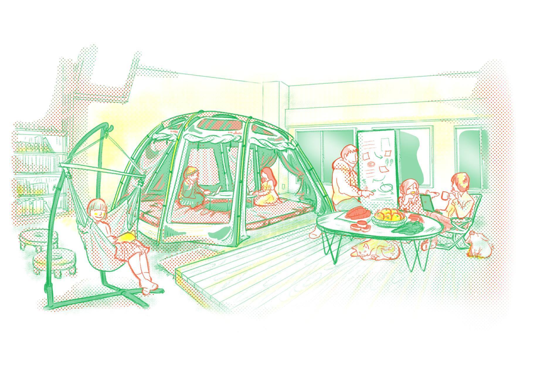 ハンモックやミーティング用テントもある楽しいオフィスに。