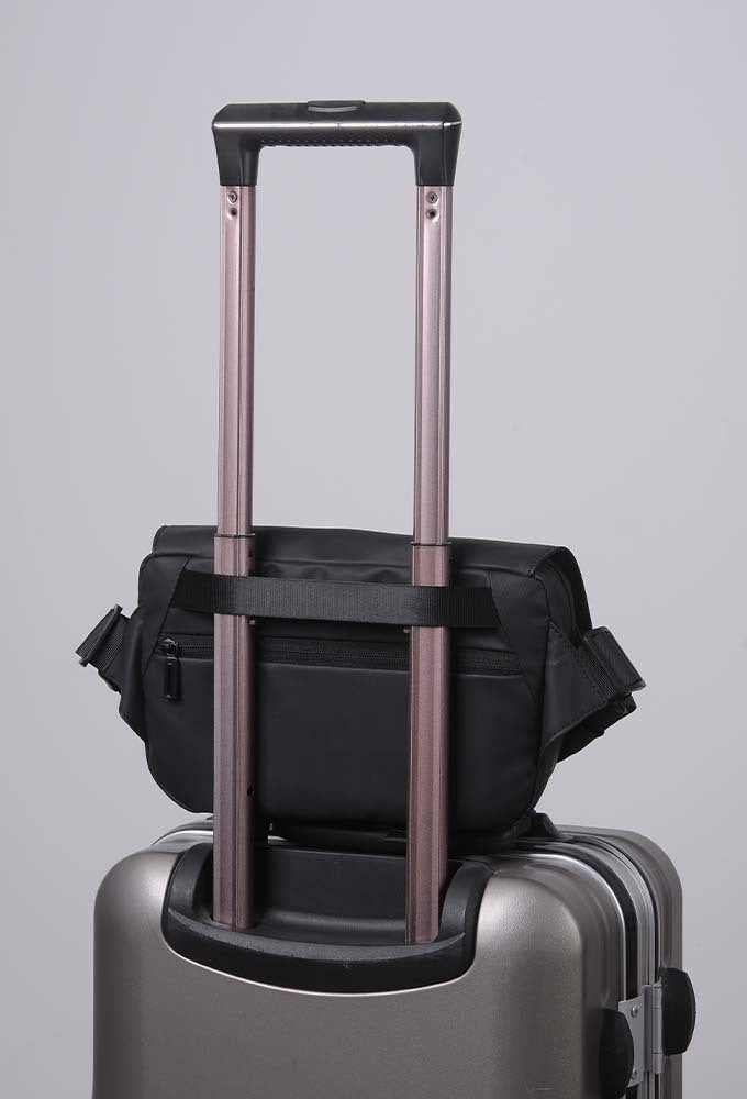 背面のジッパーバッグのデザインは、現金やパスポート、カード、財布、小銭など貴重品の保管に便利。安全に盗難を防止できます。