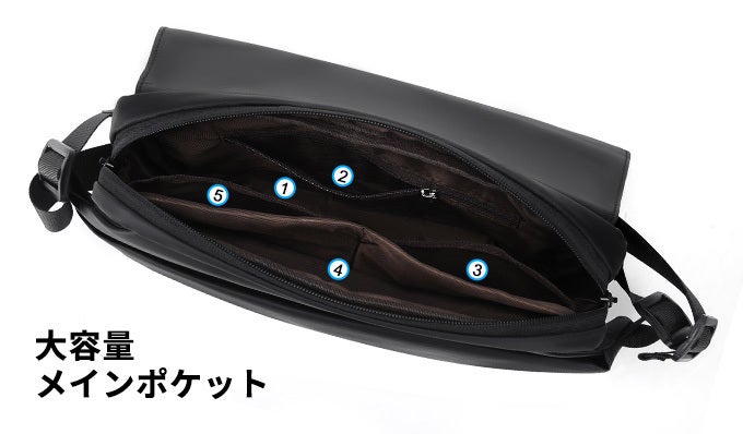 メインポケット以外にも、4つの内ポケットが付き、それぞれのポケットに小分けしてきれいに整理整頓できるので、バッグの中身が散乱しにくいです。