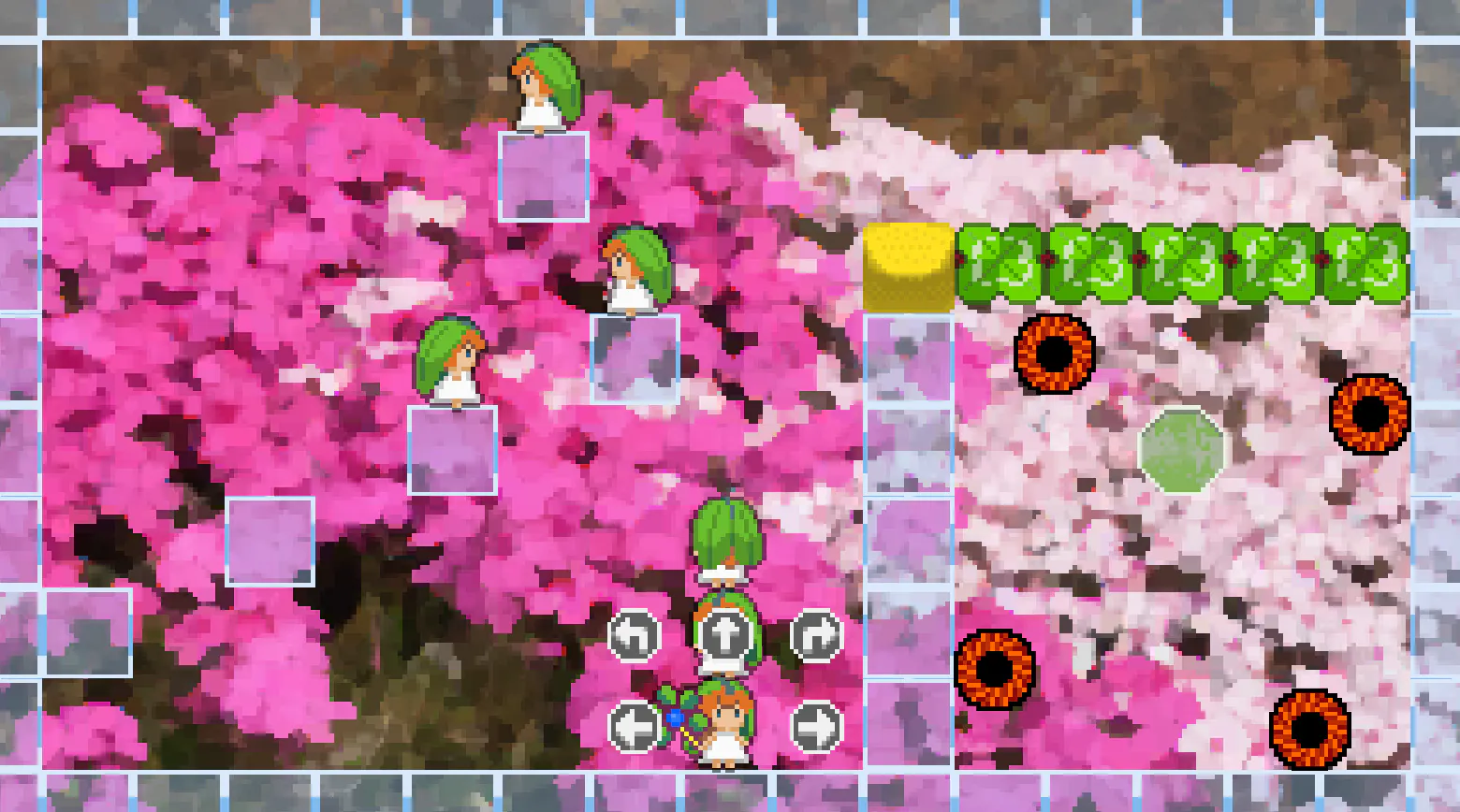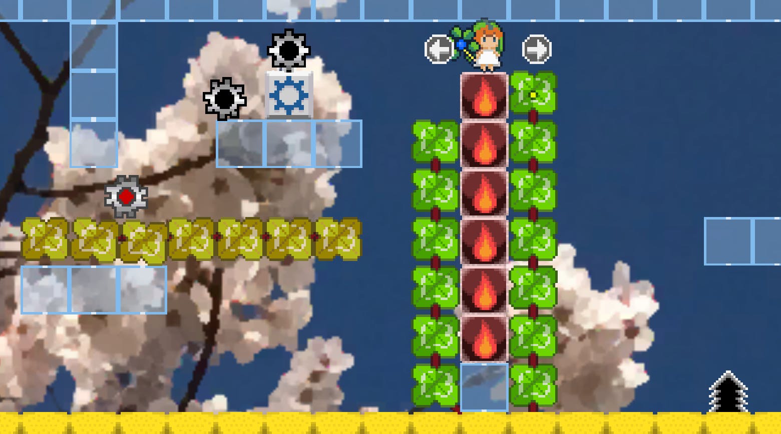 妖精のできる事は多彩です。妖精のどの能力を使うか、どのブロックを使うと良いか、ステージクリアの選択肢は様々です。初めのステージはチュートリアルとして作られています。チュートリアルといっても、その体験が得られるように設計しました。先に進むとステージはどんどん複雑になり、思考を巡らす事になります。そしてあなただけの正解を閃く体験ができるようにと。そのため、このように解く、という解き方をあらかじめ決めて作ったステージはあまり多くありません。思いつきにも似た直感でステージを作り、それを実際に解いて、解けたらステージとして採用する、という少し変わった形式で作りました。