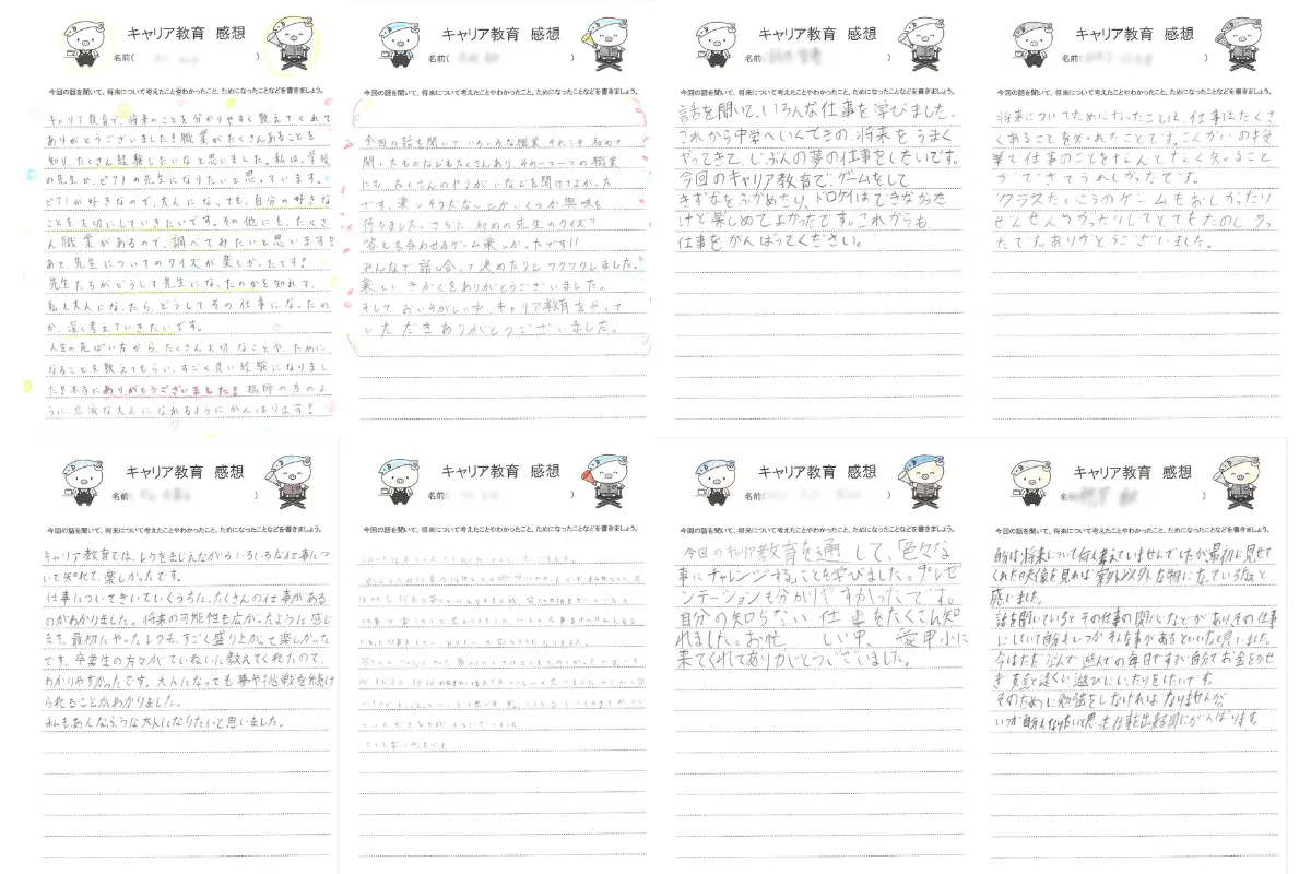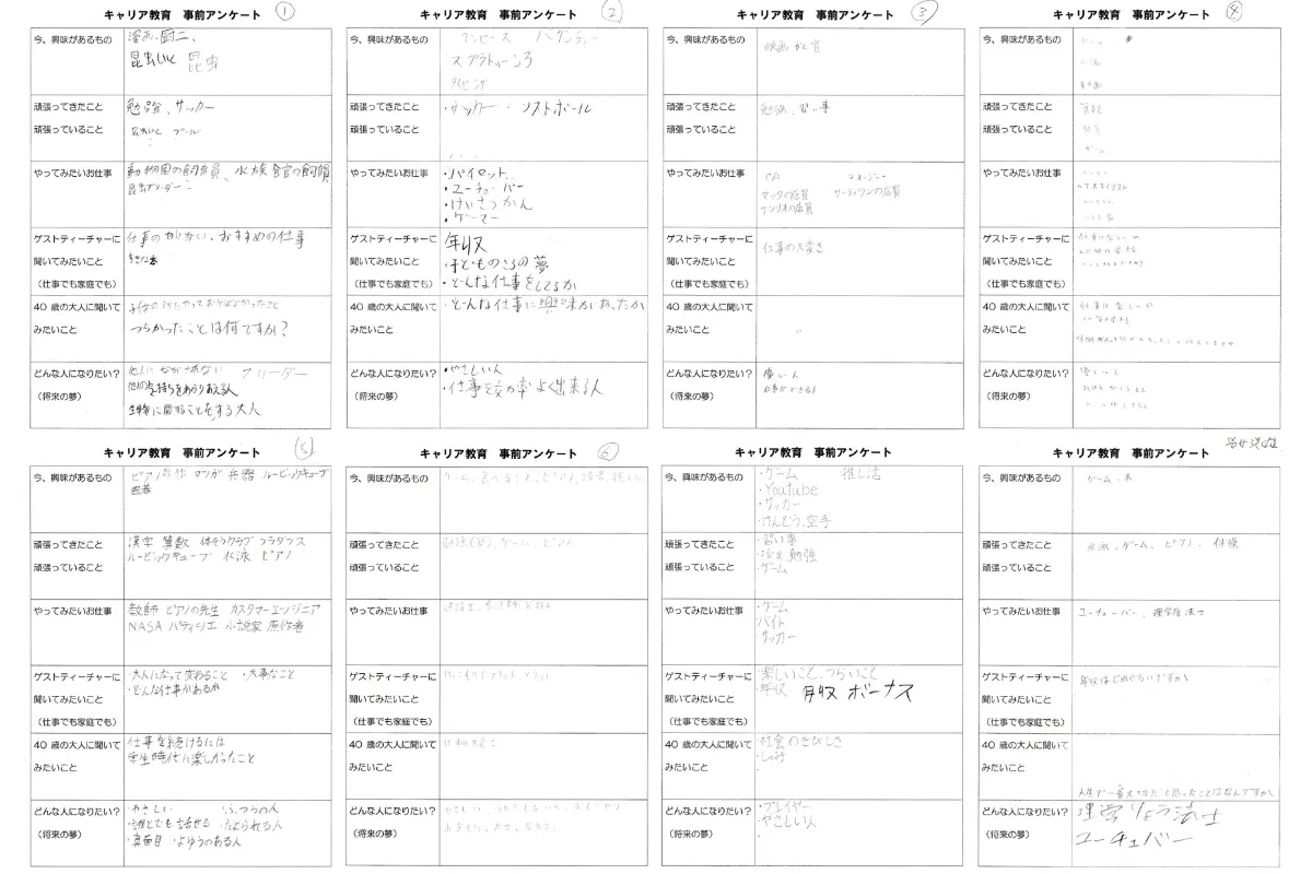 人生いろいろ企画を開催する際には、参加いただく子ども達に事前アンケートとイベント後に感想としてアンケートにお答えいただいております。その一部の画像を載せさせていただきます。