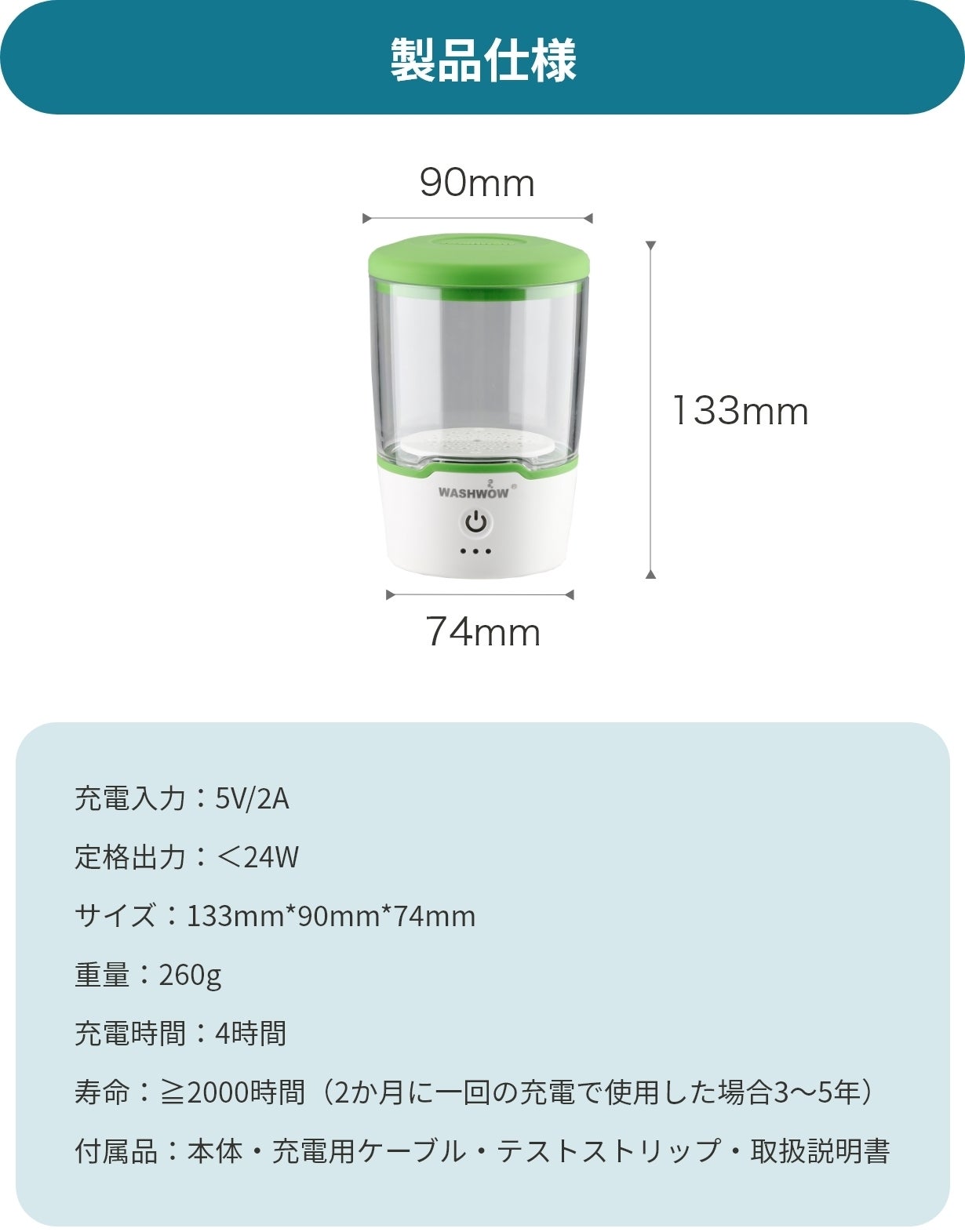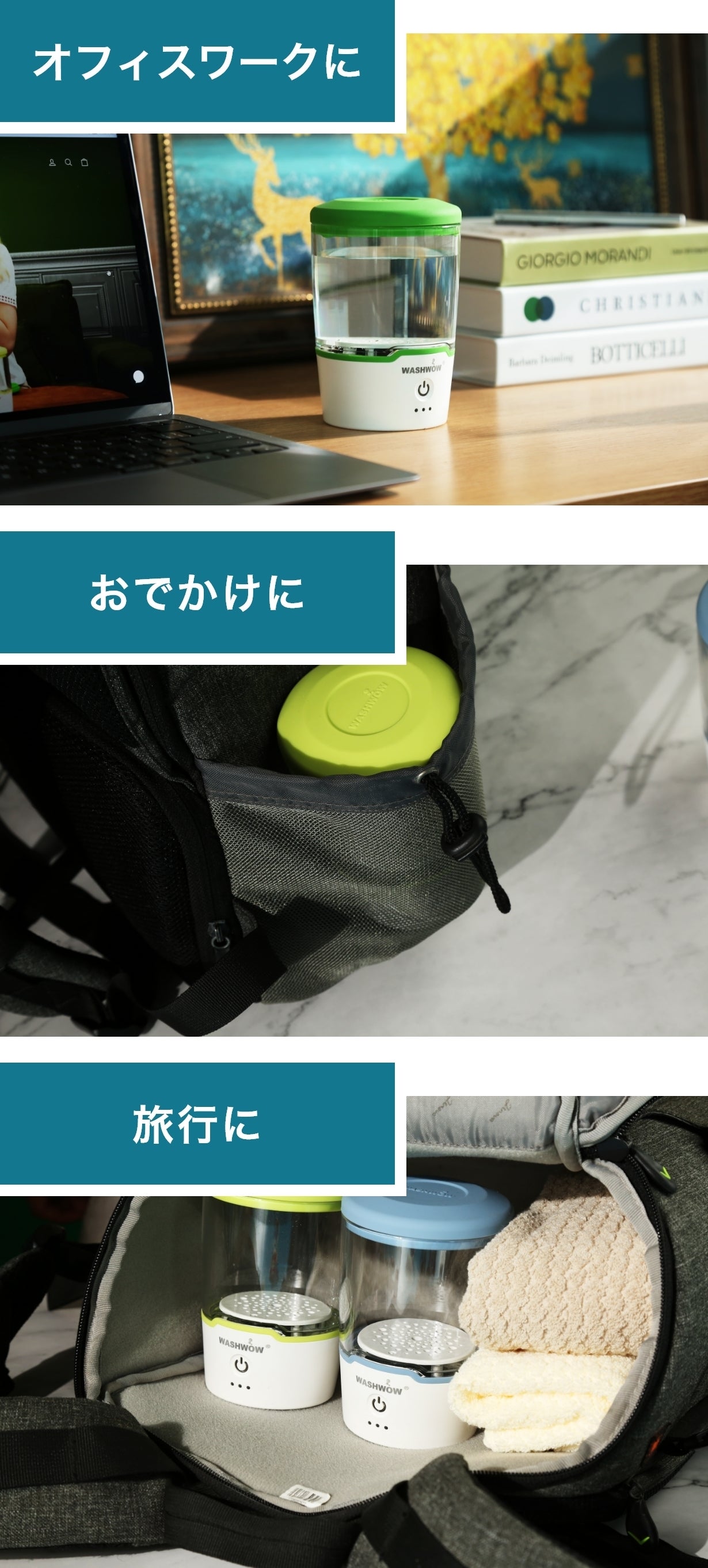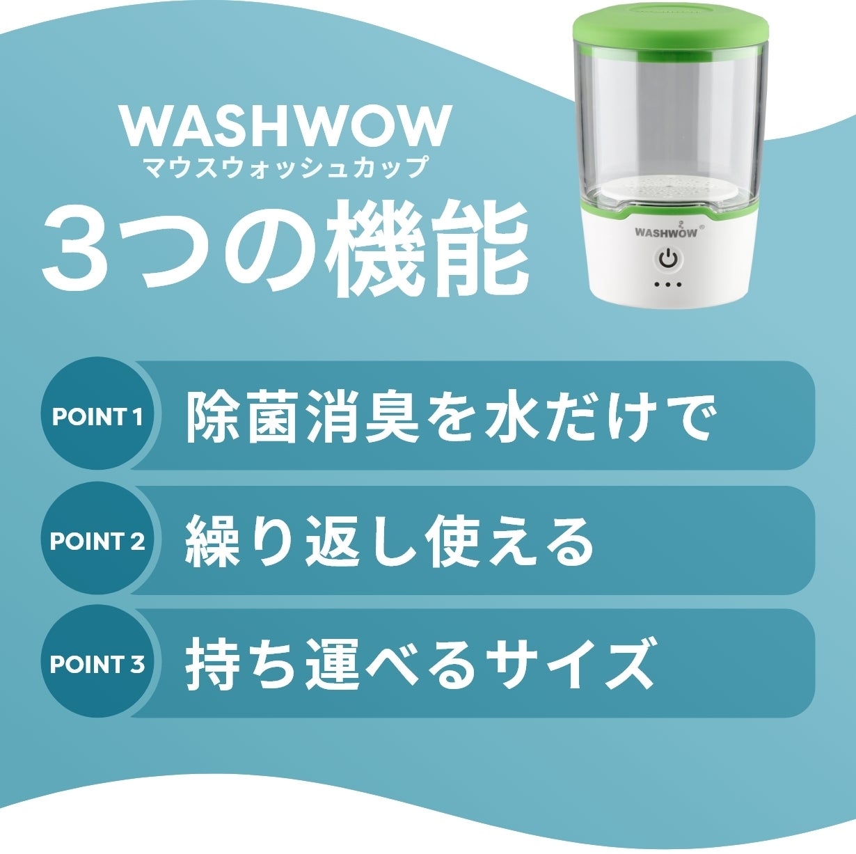 WASHWOWは利便性と効果を兼ね備えた洗浄ツールです。面倒な専用洗浄液の購入や準備の必要がなく、単に水を注ぐだけで強力な洗浄力を発揮します。この手軽さにより、旅行や外出時でも簡単に除菌ケアが可能です。