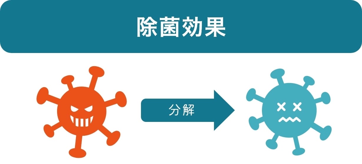 電解水に含まれる次亜塩素酸には、細菌の増殖を抑制し、多くのバクテリアやウイルスに対して高い効果を発揮する除菌効果があります。