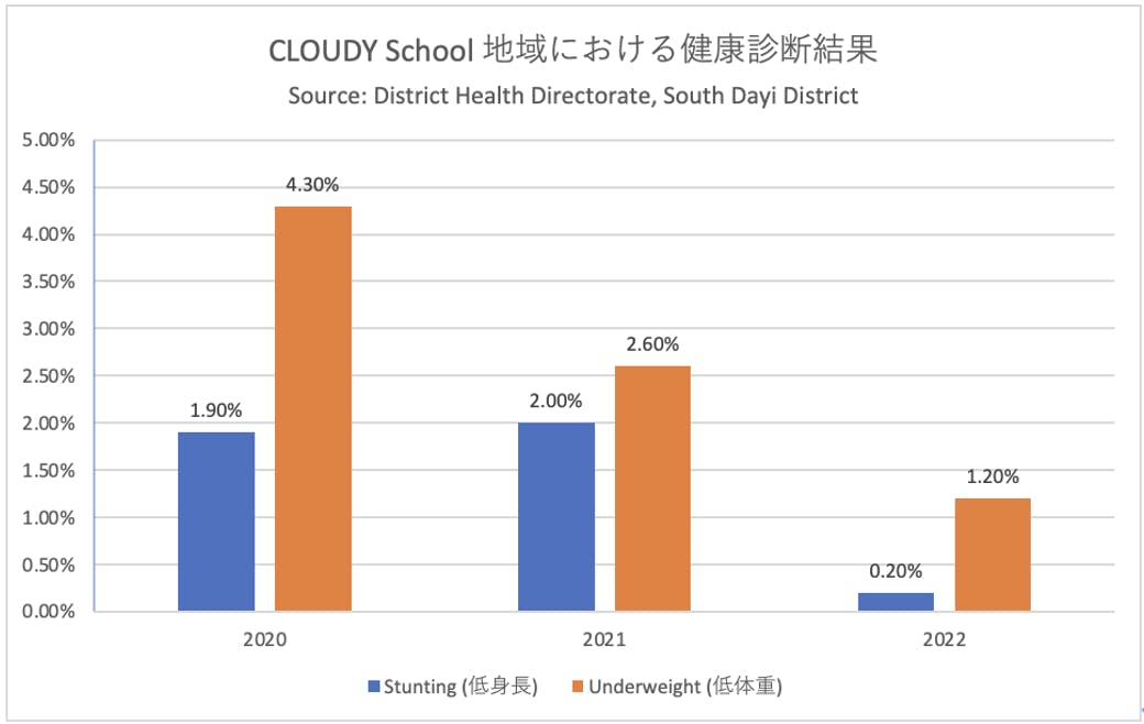 CLOUDY FARMでの食農教育を通じて、畑で収穫できた栄養価の高い野菜を学校の給食に生かせることはもとより、野菜嫌いな子どもたちが自分たちで育てた野菜は特別で「美味しい!!」と笑顔で食べるようになったこと、そしてみんなで畑仕事に取り組むことでチームワークや友だちと助け合うことを学ぶなど、たくさんの収穫を得ることができました!そして、CLOUDY SCHOOLが所在する地域の子どもたちの健康診断の結果も、立ち上げから2年ほどで低身長・低体重の数値が大幅に改善するまでに至っていたのです。