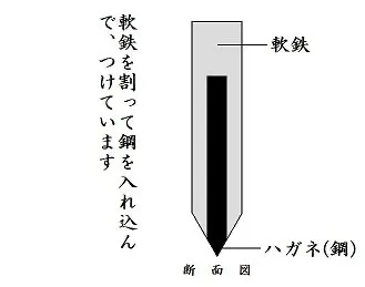 こうすることで実際物を切る刃の部分は硬い鋼が研ぎ出すことで出てきます。