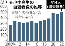 2022年には小中高生の自殺者数が過去最多”514人”。