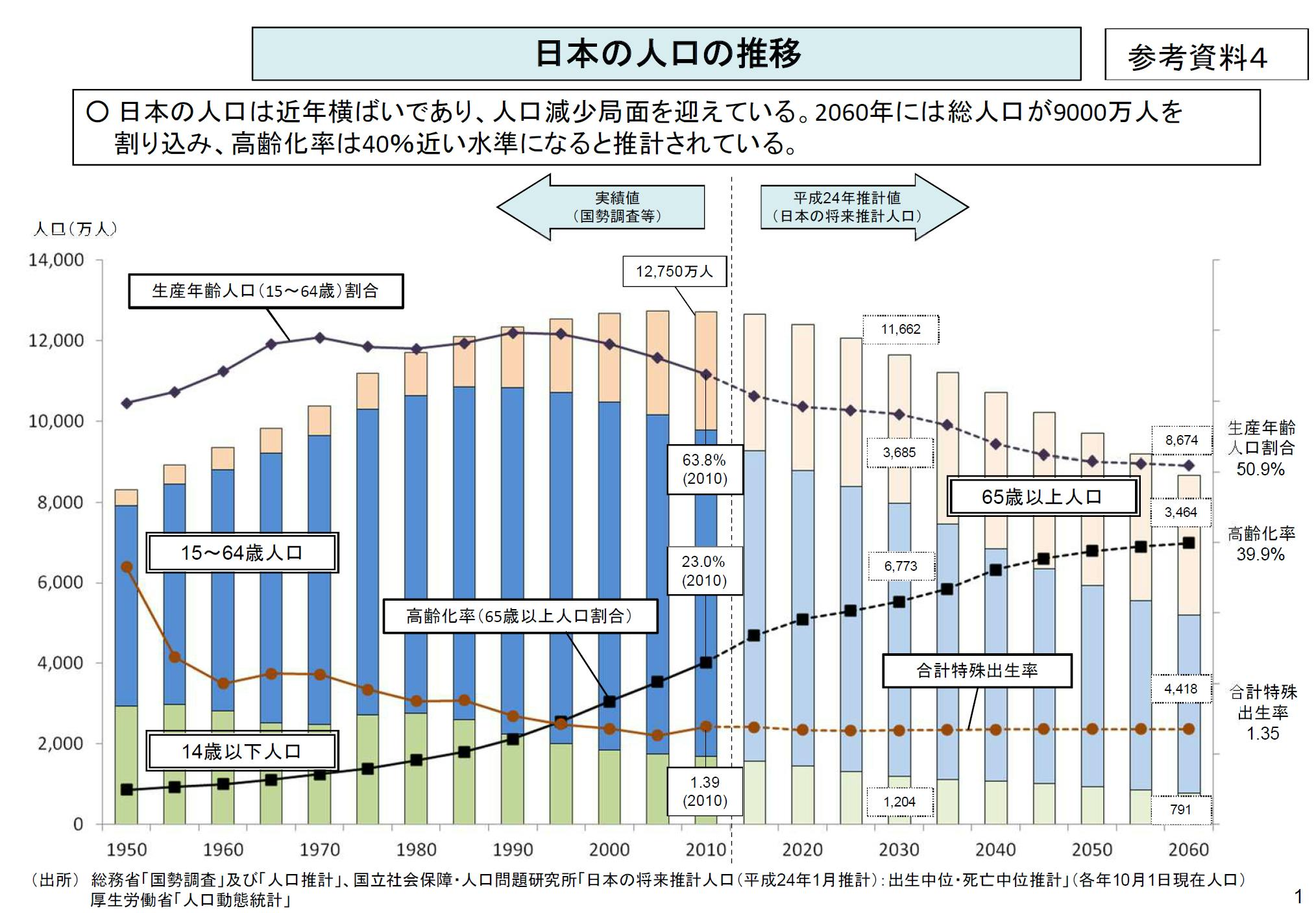2056年には日本の人口が1億人を割れる見込み。