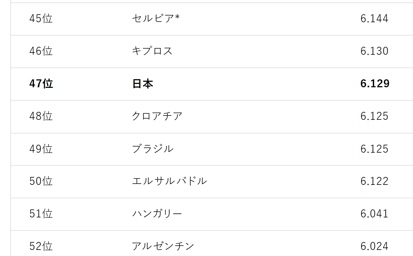2023年世界幸福度ランキング ”47位”。