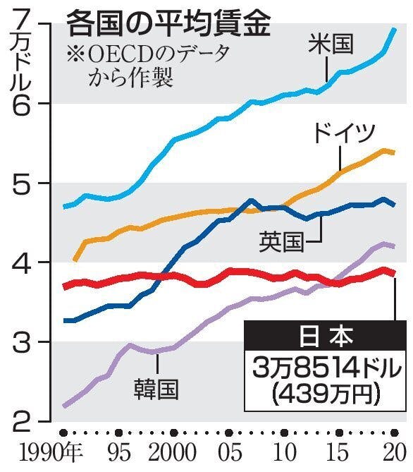 日本人の平均年収”30年間横ばい”。