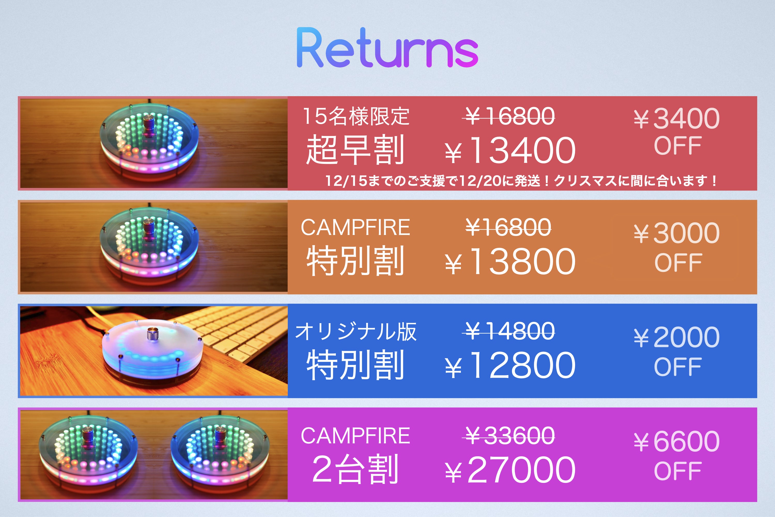 15台限定 超早割: 12/17までのご注文で12/20に発送予定(クリスマスに間に合います!)
