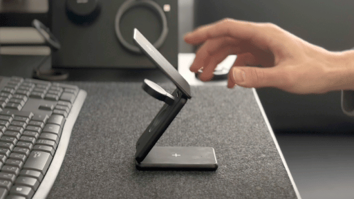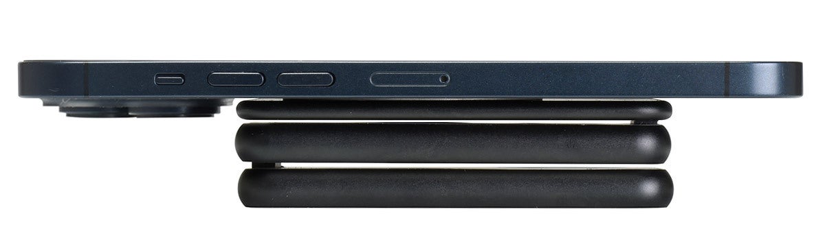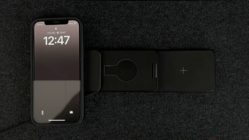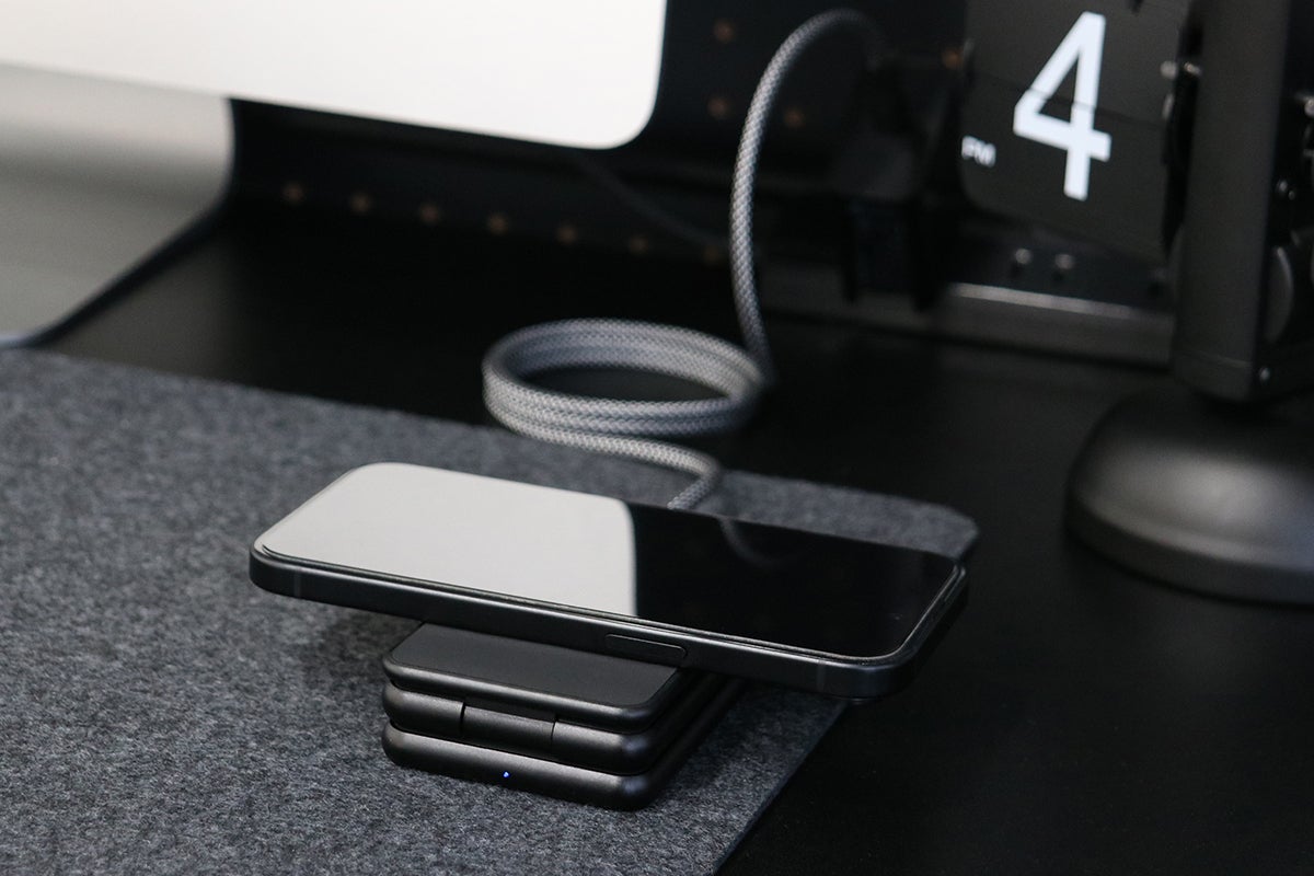 フラットスタイルであれば、MagSafeマグネット内蔵の充電パッドにワイヤレス充電対応のスマートフォンを設置しても、同時充電時に最大15Wの高速充電が可能です。