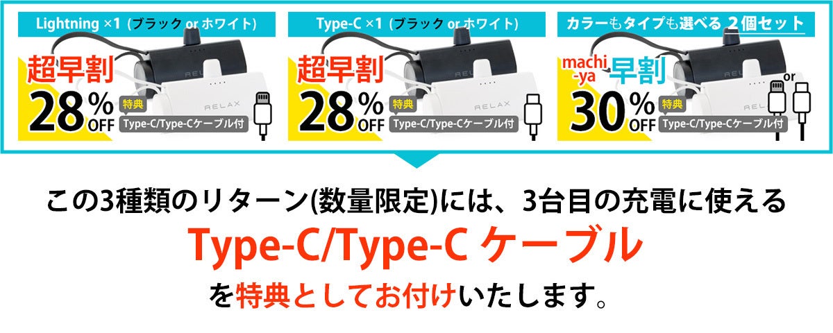 ▍付属品:充電用ケーブル(USB Type-A / USB Type-C)