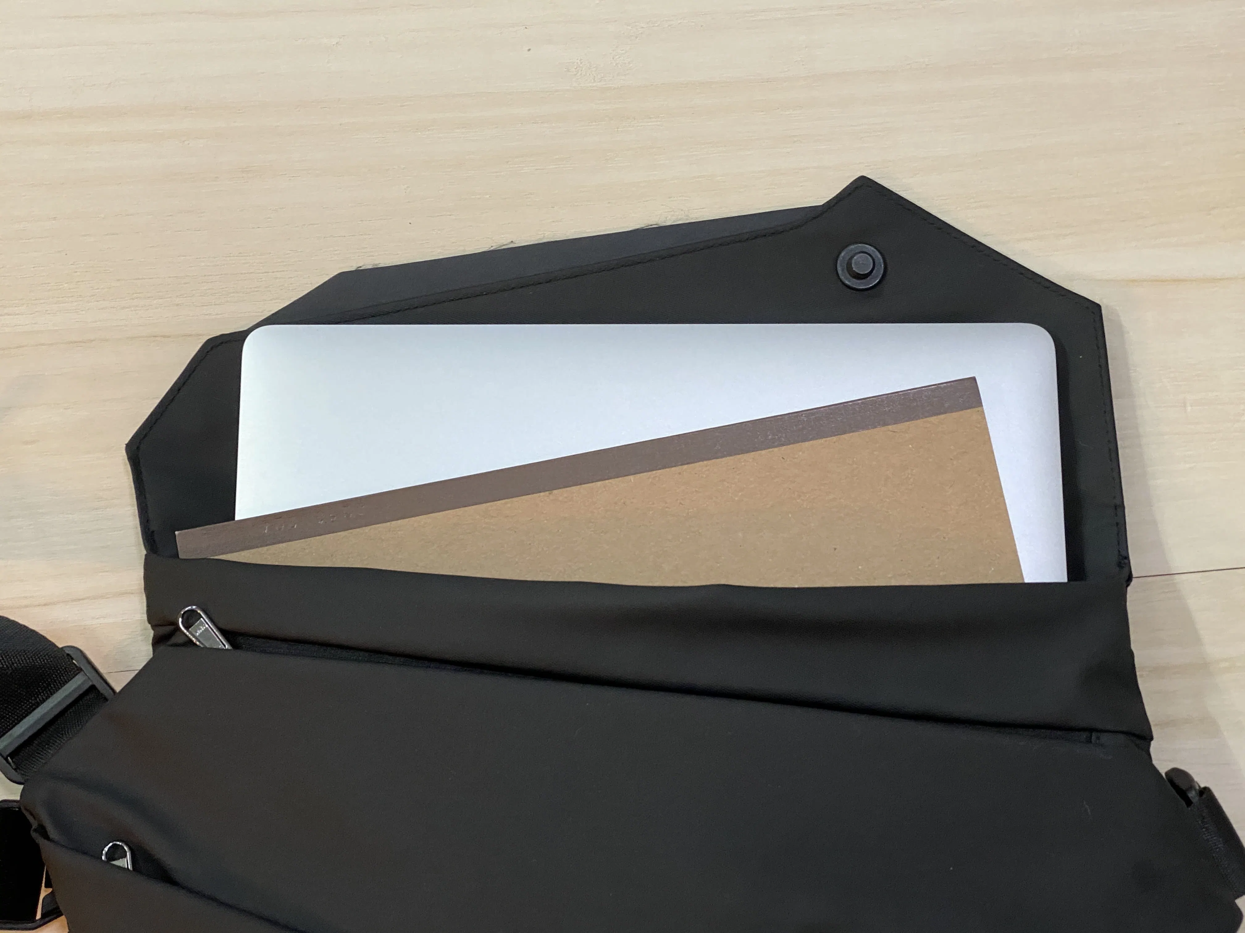 A:今作のSEKKEI MX-slingには14インチよりも大きいノートパソコンは収納できません。