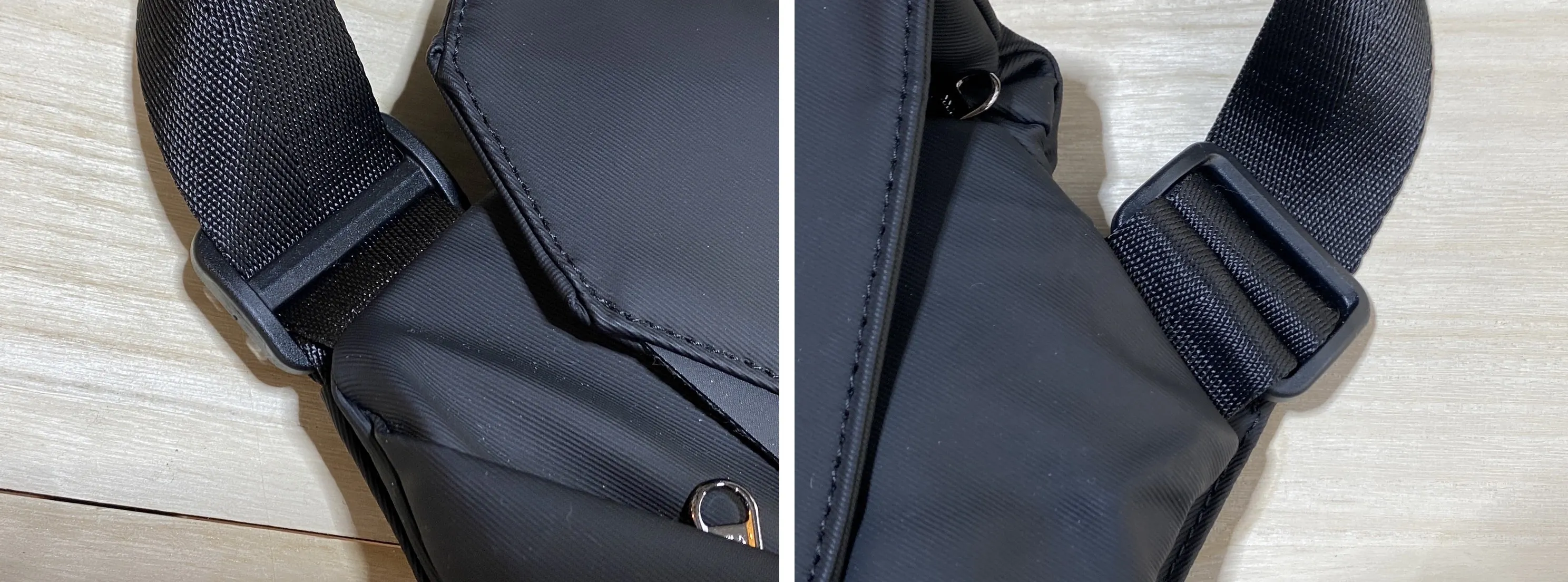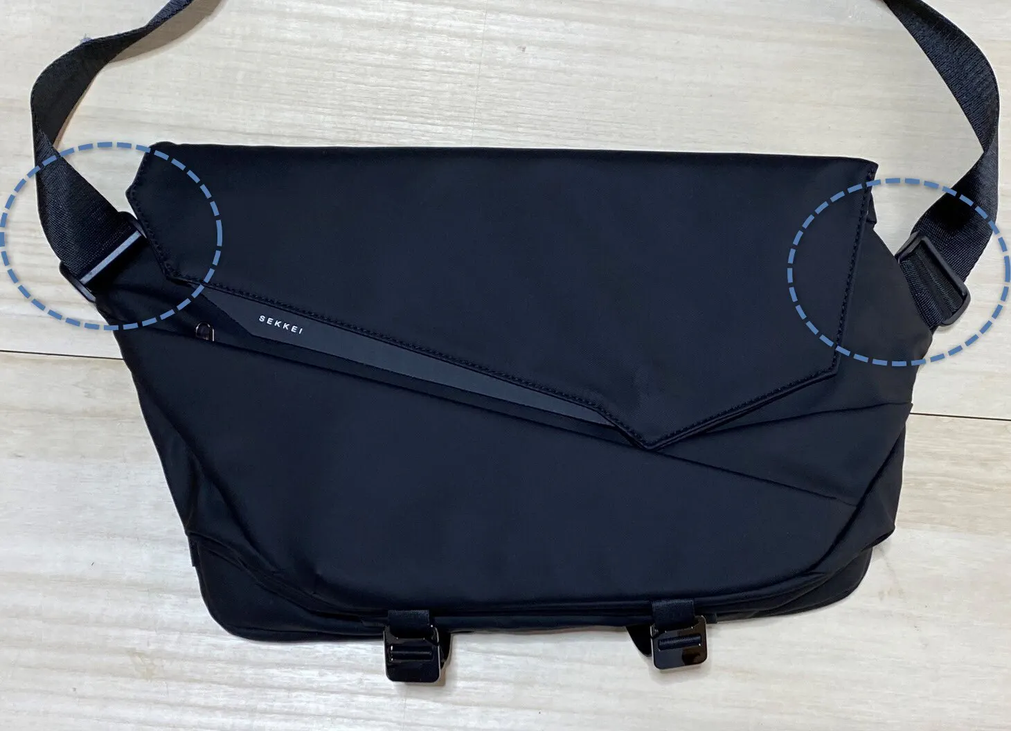 SEKKEI MX-sling はバッグ本体側のプラスチックバックルの向きが左右で違う仕様になっています。
