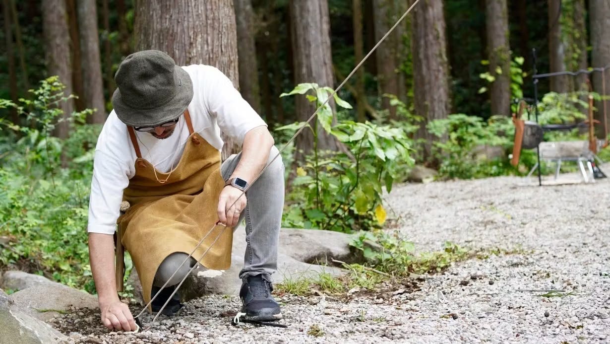 キャンプ場に何度か通う内に、自分が生業としている”革”がこの自然にはとけこむのではないかという想いが湧き上がってきました。革は他の素材と比べ、柔らかく体にフィットする自然な素材であるためです。