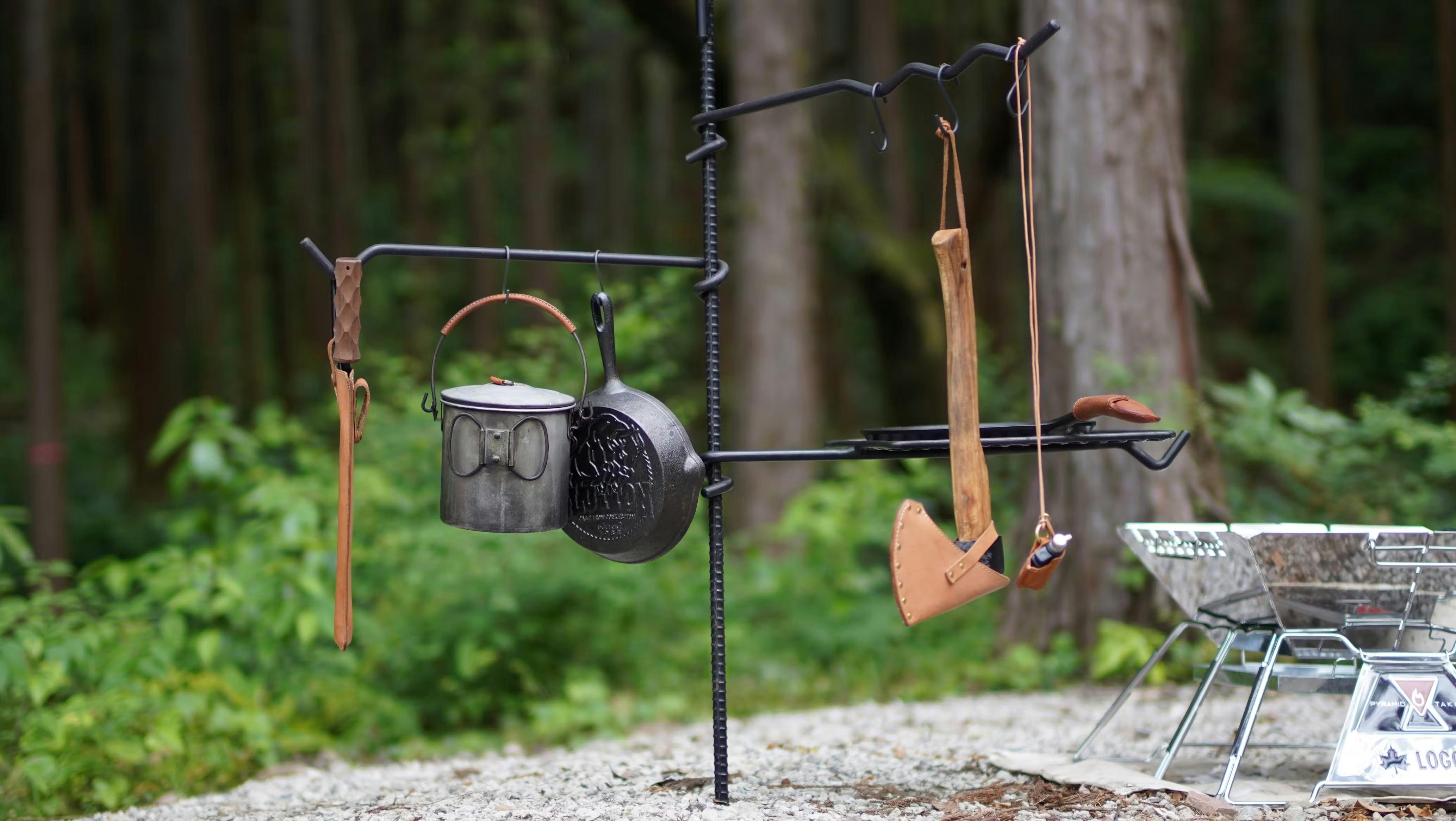 例えば私の場合、テントやタープ設営時にはハンマーをループにぶら下げ、ペグをポケットに入れます。焚き火の時は音楽や写真を撮るためのスマートホン・火吹き棒・ライターなどをポケットに入れて出し入れを行います。また食事の用意をする時には料理用のナイフをポケットにしまいループにはタオルをかけます。