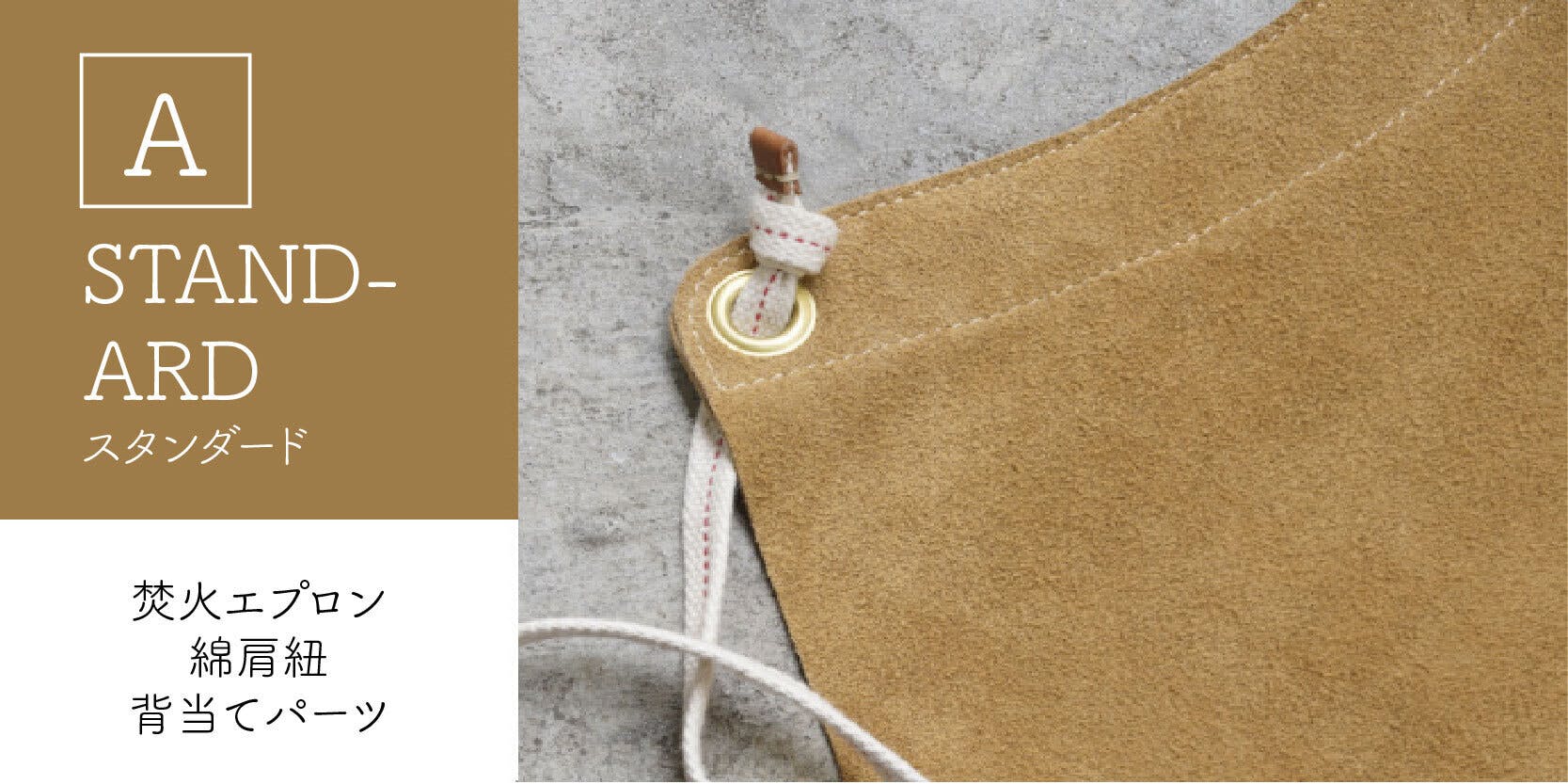 肩紐の素材は、キャンプにも使用されるオイルランタン(ハリケーンランタン)から着想をしてその芯を採用しています。キャンプへの愛着につながると考えたこと、加えてその素材が綿100%であり難燃性も焚き火エプロンには適しています。