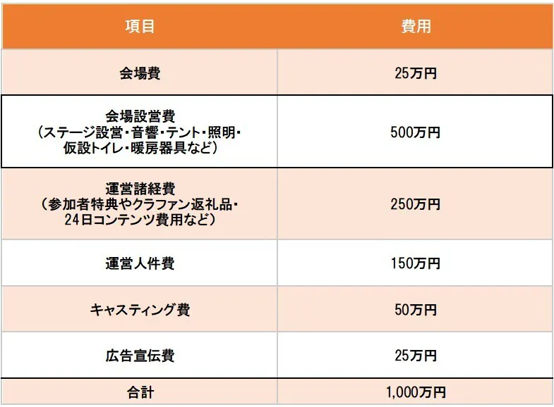 キタキュンFESを成功させるためには、皆さんの応援が必要です。実際に今回のプロジェクトで支援していただいた費用は下記のように使用をさせていただきます。