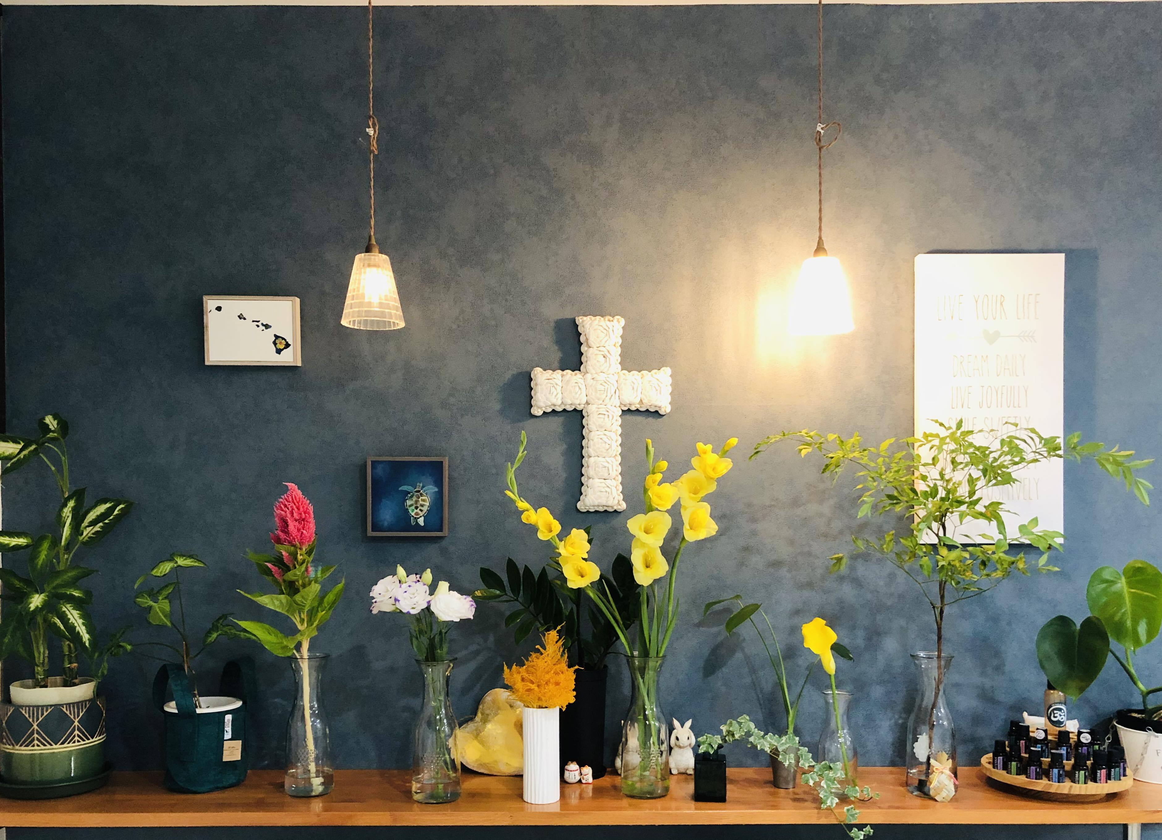 そこから見えない何かに導かれるようにヨガ講師となって、ヨガ講師になりたいという方向けにヨガ講師養成も始めて「生徒さんが自由に利用できるスタジオ」の必要性を感じて北谷町にスタジオをオープン。