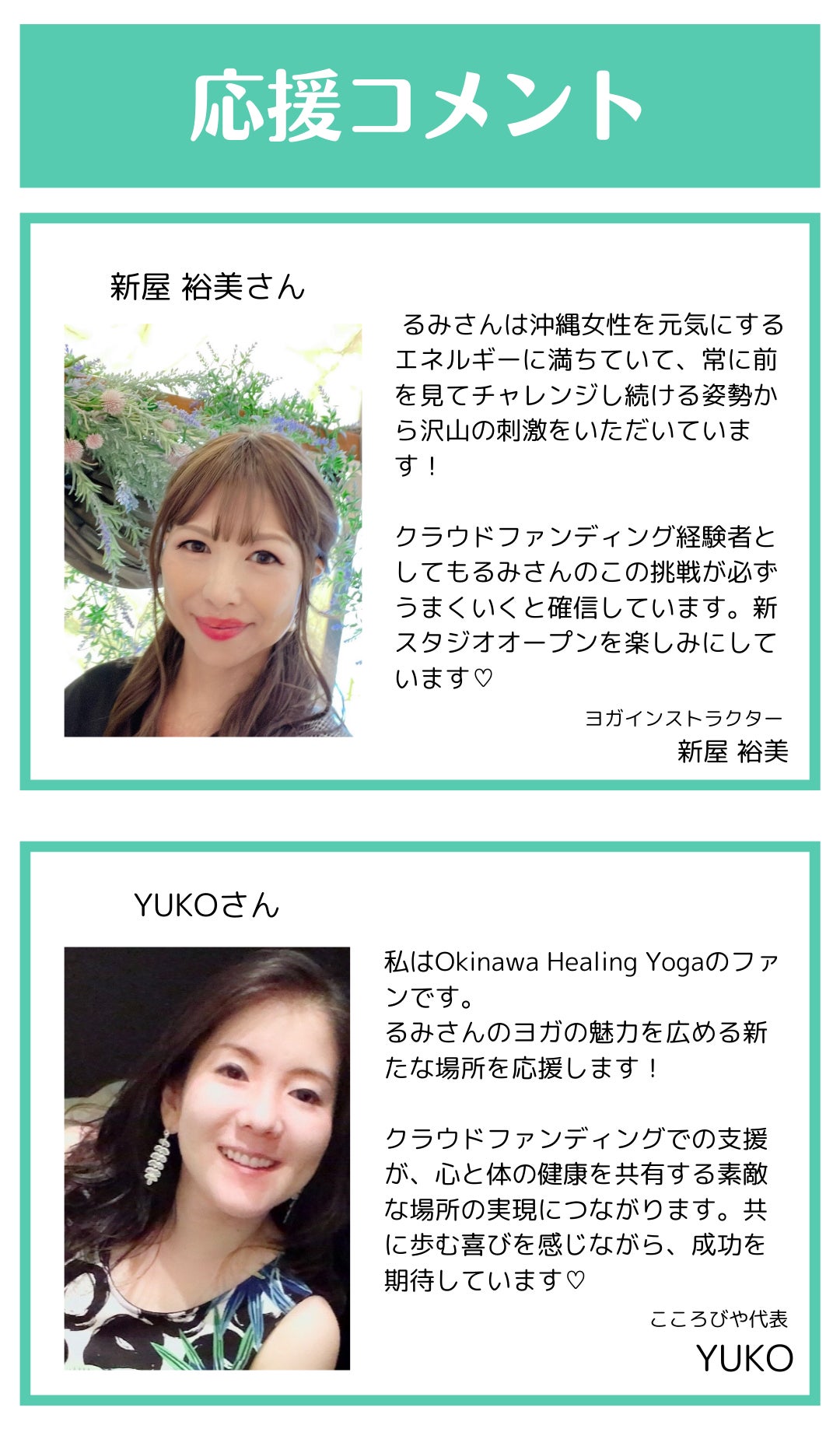 プロジェクト目標額50万円を達成した場合は 、CAMPFIRE掲載手数料・決済手数料・税金を引いた額を「Okinawa Healing Yoga.」の運転資金とします。