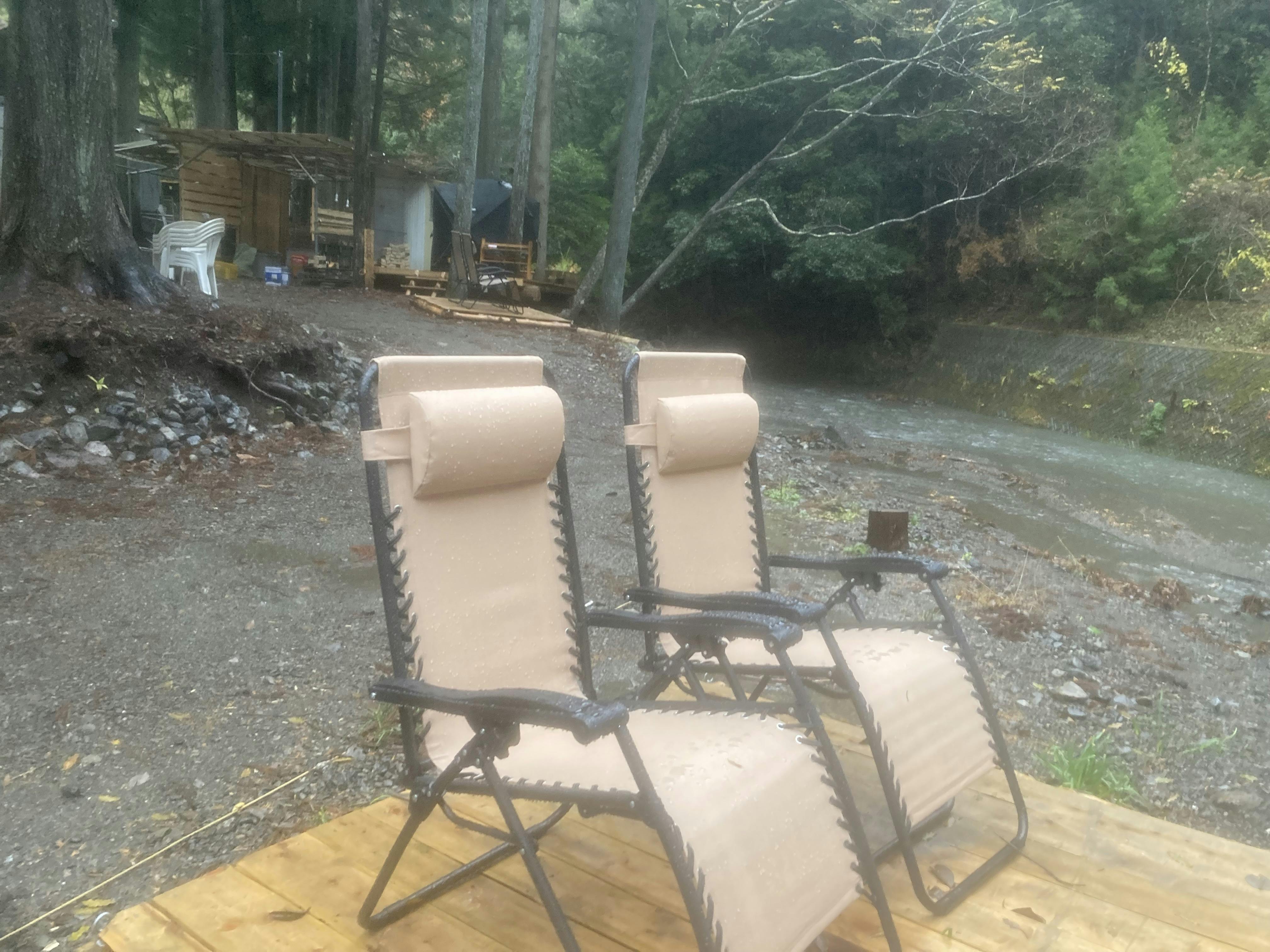 現在、キャンプすがりではテントサウナ3台を常設しサウナ体験ができていたのですが、キャンプ場オープンから3ヶ月、大雨で増水したすがり川にインフィニティチェア4台、薪ストーブ2台がウッドデッキごと流されてしまうことが2回もありました🥲