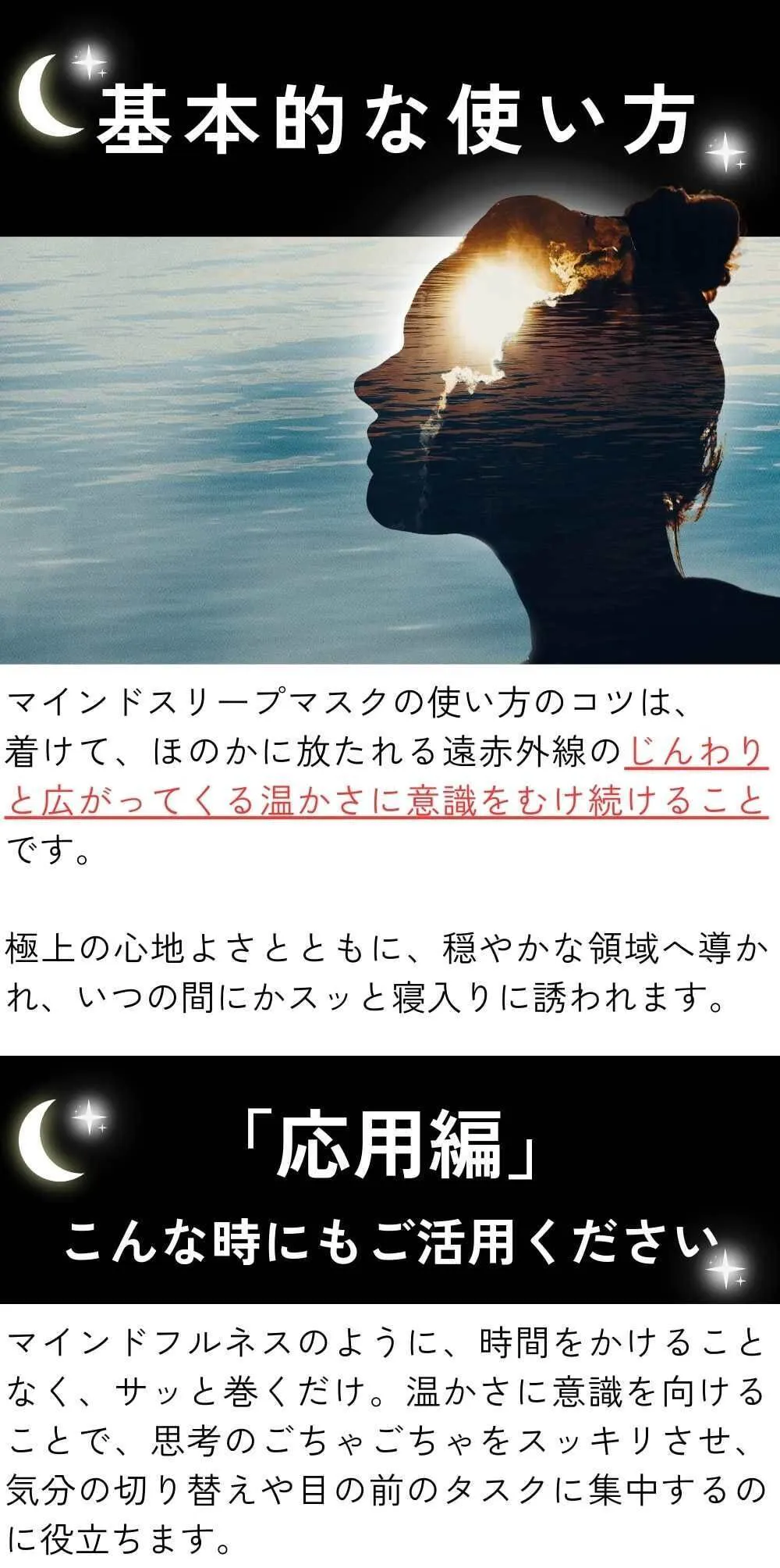 世界的デザイン技術よって引きだされた独自の特性を持つマインドスリープマスクが、現代の寝つき問題に悩む多くの方々にとって、有益なサポートとなることを期待しています。
