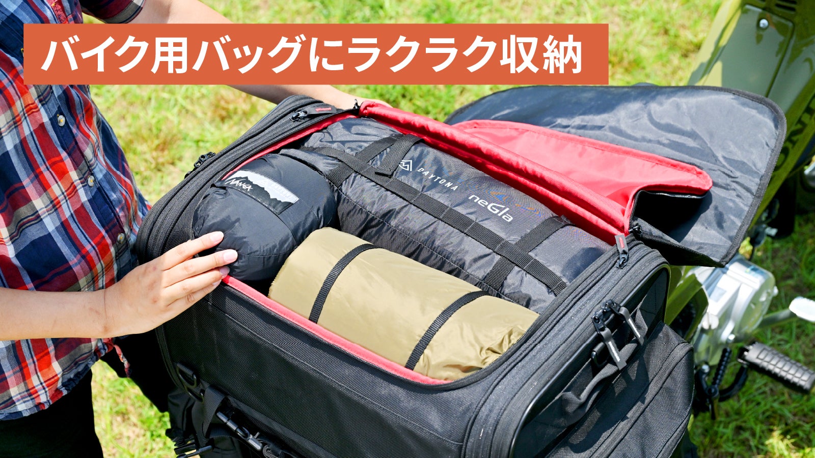 ◎バイクや小型車などの収納スペースが少なくても便利な、軽量コンパクト設計。