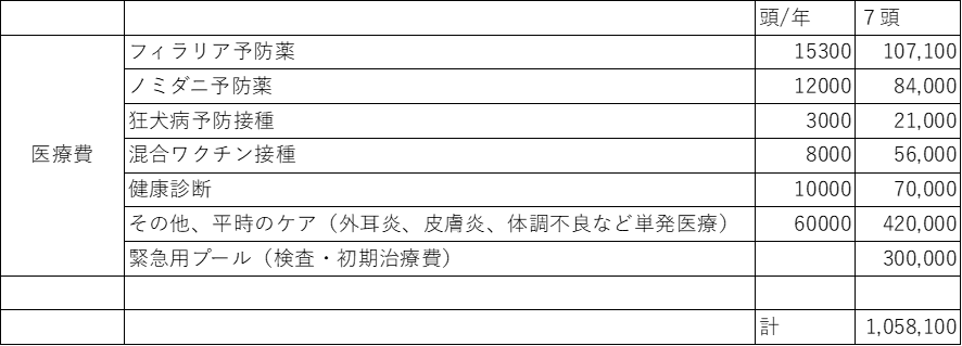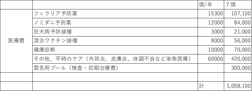 表のように、予防薬のほかにも日頃のケアにかかる費用なども必要になってきます。