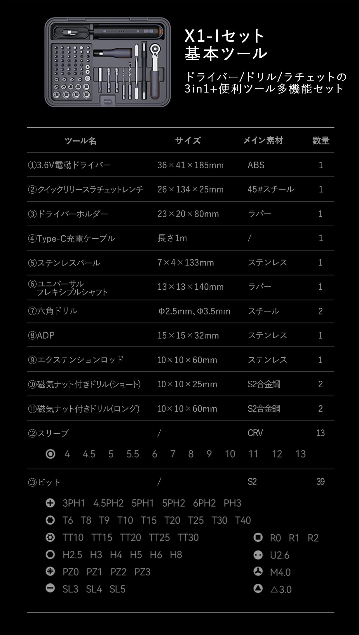 JIMIHOME X3-ABIはDIYヘビーユーザーにもぴったりな多機能ドライバー・ドリル・ラチェットの3in1セット+高品質ベーシックツールセットのコンボです。