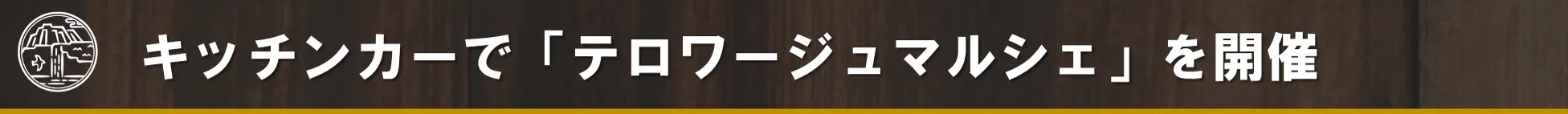 テロワージュ東北をもっと多くの方に体験していただきたい、その想いから2020年に初めてクラウドファンディングを実施しました。皆様のご支援により購入したキッチンカーを用いて開催したのが「テロワージュマルシェ」です。テロワージュマルシェは、東北各地の生産者・酒蔵・シェフなどが屋外にブースを出展し、お客様と交流しながら地元の魅力的な食を提供するほか、事業者同士の繋がりも生みだします。秋保ワイナリーの敷地内のほか、東北の各産地でも開催し、生産現場のリアル感と共に食をお楽しみいただきました。