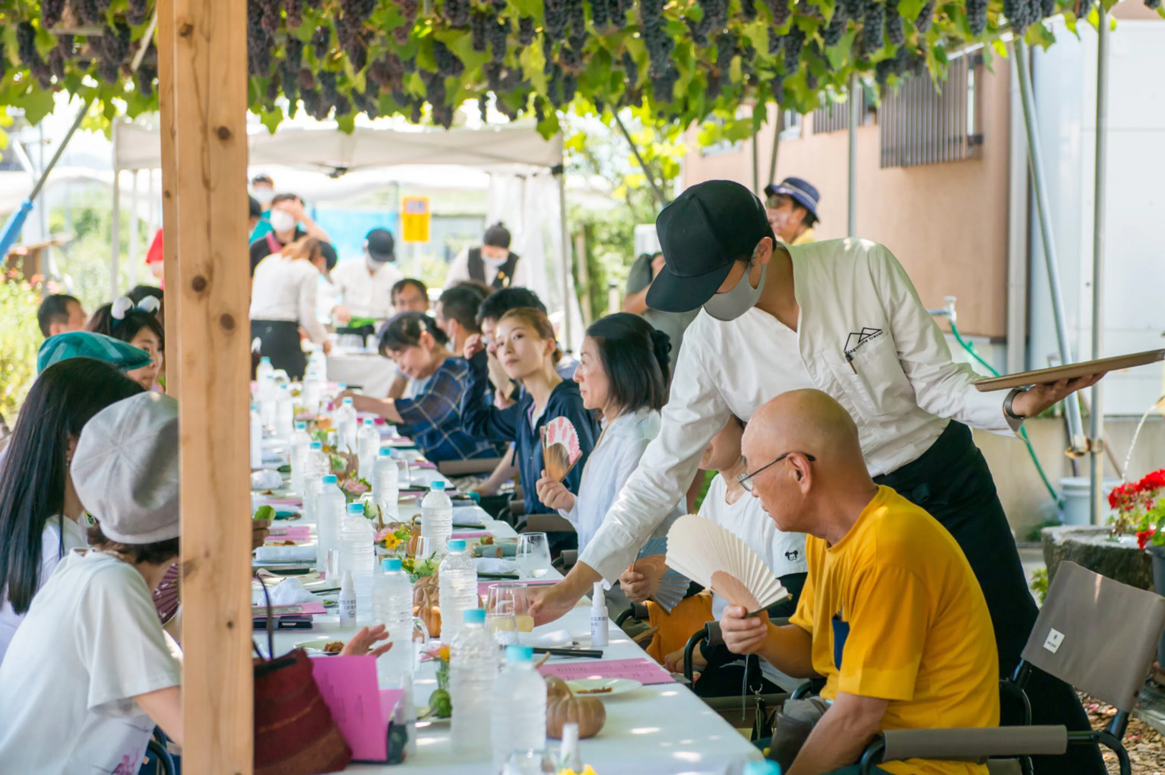 そして、これまでの活動が実を結び、2022年10月には復興庁・一般社団法人東北絆テーブルとともに「テロワージュ東北マルシェ2022 Harvest~収穫祭~」を仙台市・泉パークタウンTapio前の道路を使って開催し、約1.5万人もの方がお越しいただくなど、これまでにない規模でイベントを行うことができました。小さな一歩から始めたテロワージュをこれだけ多くの方々に体験していただけたことは、これまでの努力が報われた嬉しさと同時に、テロワージュが多くの人の支えになるという実感、そしてより一層の発展させていく決意をした瞬間でもありました。