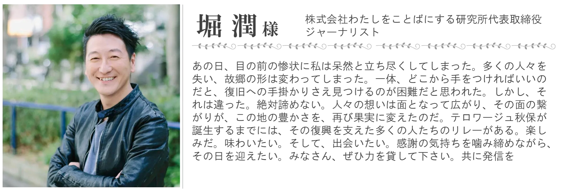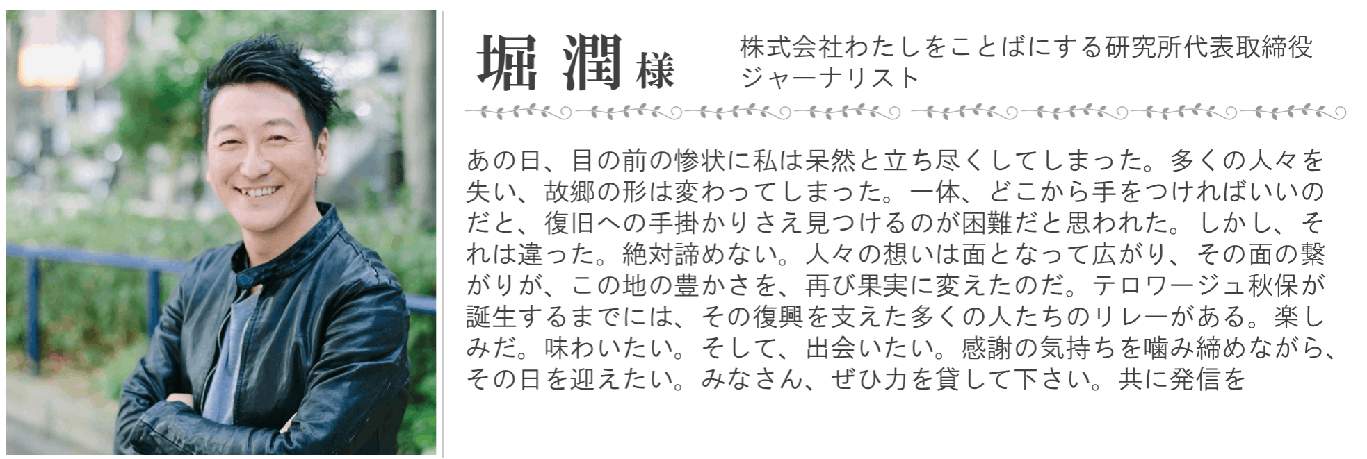 東北を食で盛り上げていく、その担い手の一人として、皆様のご支援を心よりお待ち申し上げます。